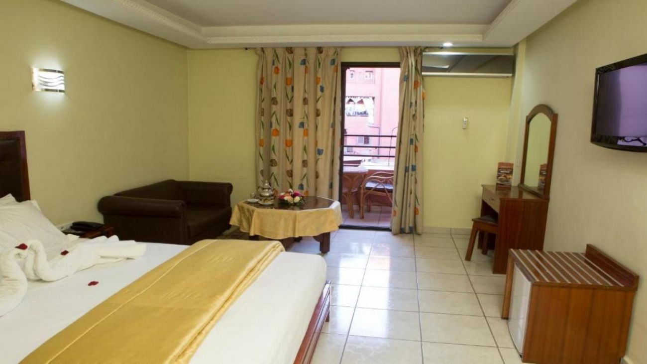 открит плувен басейн, слънчева тераса, ресторант, лоби зона и 24-часова рецепция. Хотелът е подходящ както за кратък престой, така и като база при обиколни програми в Маракеш.