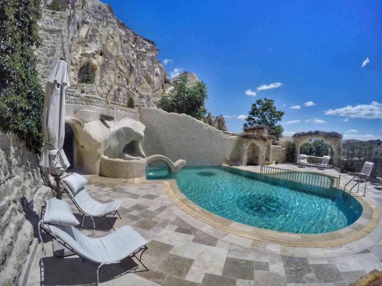 Стаи: Хотелът разполага с 10 пещерни къщи, общо 120 стаи, датиращи от 5-ти и 6-ти век и гръцко имение от 19-ти век. Стаите за настаняване варират от екзотични луксозни пещери до многокамерни луксозни апартаменти, включително семейни апартаменти.