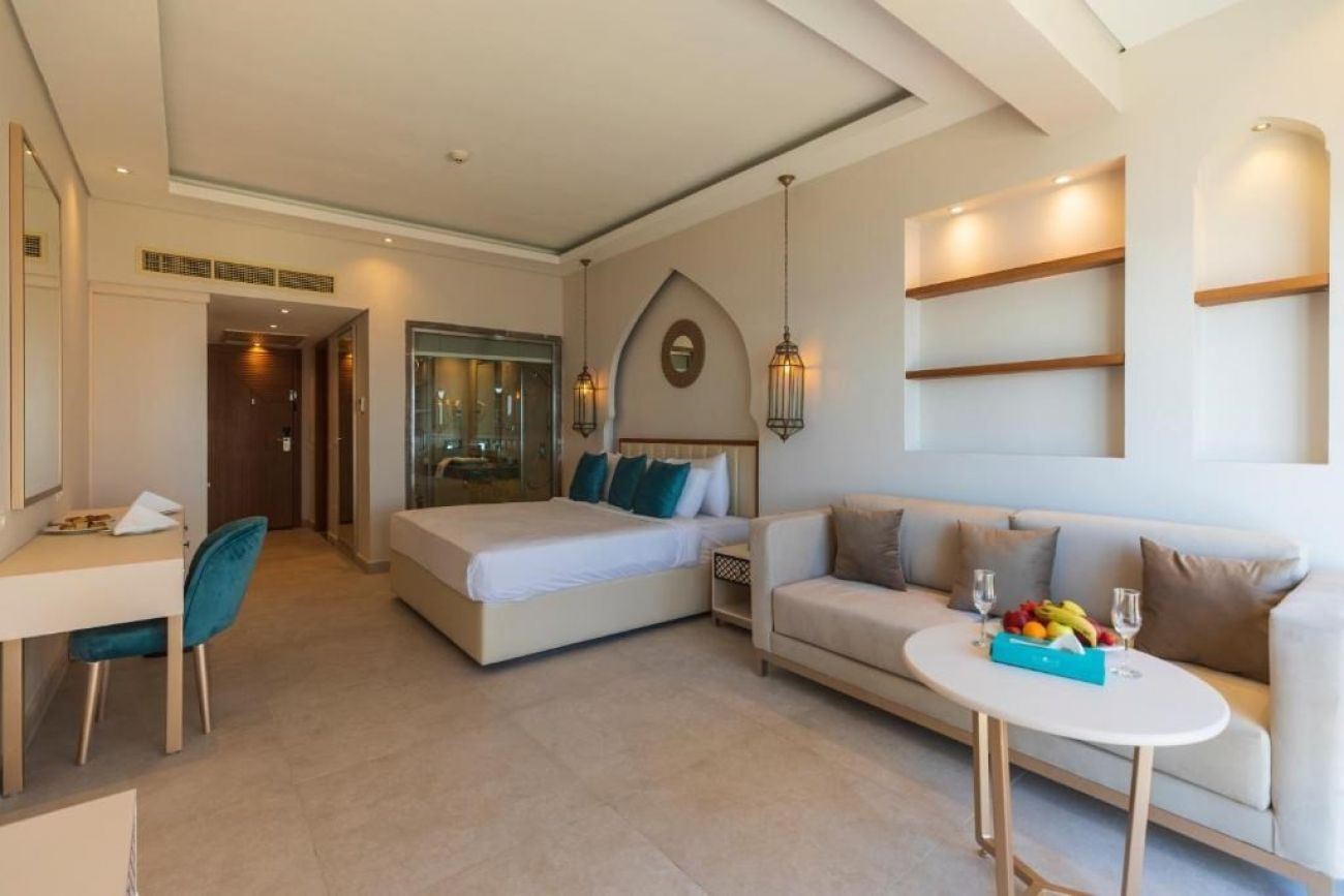 На територията на хотела: Хотелът разполага с 8 ресторанта, от които 1 основен Shahrzad с интернационална кухня и 7 алакарт ресторанта (Gamila с арабска кухня, Frida с мексиканска кухня, Basilico с италианска кухня, Manohar с индийска кухня, Chimichurri с грил кухня, Mai Thai с азиатска кухня, Felucca с морска кухня) и 6 бара (лоби бар, 3 бара при басейна, бар на плажа, шиша бар), открити басейни, СПА център, конферетни зали.
