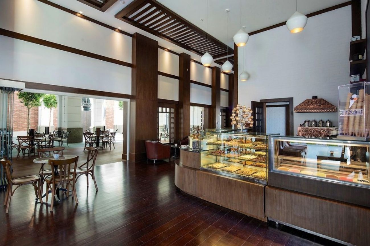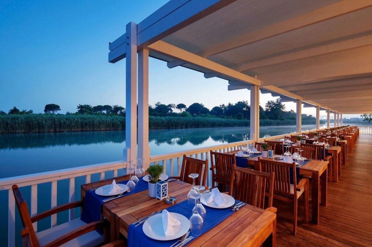 На територията на хотела: Основен ресторант, 6 а-ла-карт ресторанта (с предварителна резервация - турски, италиански, рибен; грил ресторант, ресторант-лодка, кабана ресторант - платени, съгласно концепцията на хотела), 10 бара (през зимата работят 6 бара), 4 открити басейна (от които 1 с морска вода и подгряване през зимния период и 1 с олимпийски размери) и 1 закрит басейни 1 закрит детски басейн, аквапарк (4 пързалки за възрастни и 6 за деца), сладкарница, нощен клуб, жива музика, СПА център, Wi-Fi (безплатен).
