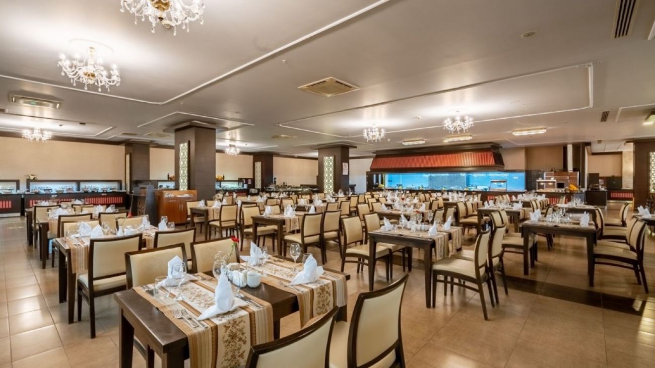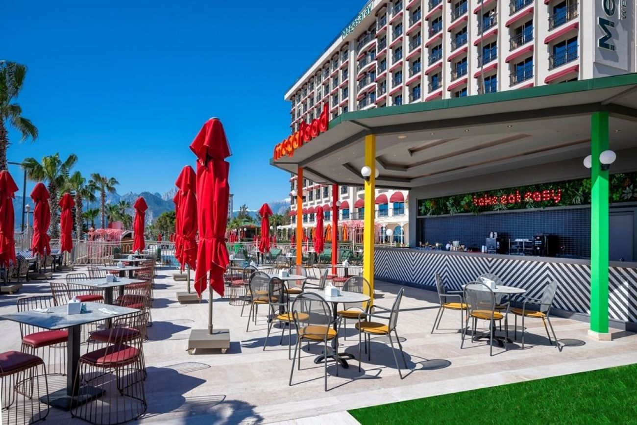 Хотела разполага с основен ресротант, 2 а-ла-карт ресторанта (платени), 4 бара, от който единия работи 24 часа, 2 открити басейна за възрасни, 2 открити басейна за деца, 2 заскрити басейна за възрастни, 1 закрит басейн за деца, вътрешните басейни работят и през зимата. За деца: детска дискотека, спортни игри, игри в басейна, мини игрален клуб (4-12г.), йога за деца, гимнастика, водна аеробика, дартс за деца, боулинг за деца, специално шоу за деца което се организира 1 път в седмицата, детско кино, занимание свързани с рисуване, анимация. Безплатни услуги: тенис на маса, WIFI, дартс, йога, аеробика, зумба, жива музика, анимациия. Платени услуги: лекарски услуги, химическо чистене, пералня, детски столчета/колички, а-ла-карт ресторанти, магазини, водни спортове, специални организации за рожден ден/сватба/ предложение за брак/ концепция за меден месец.