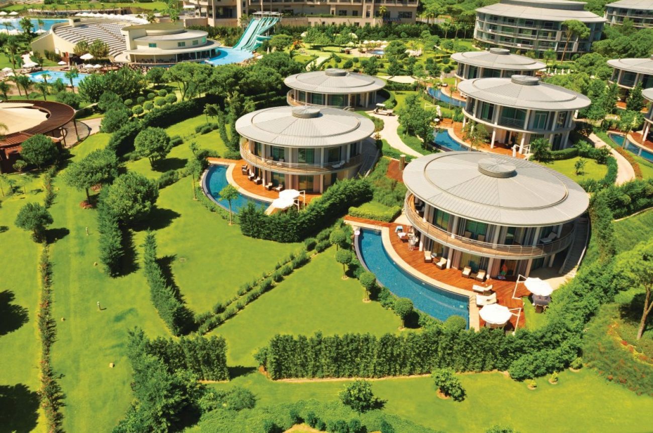 На територията на хотела: Основен ресторант (има диетична и вегетарианска храна), 5 ресторанта a la carte (турски, италиански, далекоизточен, южноамерикански, рибен - плаща се за резервацията, с предварително записване), 9 бара (един от тях работи 24 часа), снек ресторанти, дискотека, 4 открити басейна (един ит тях с полуолимпийски размери), 1 закрит басейн (с подгряване през зимата), Аквапарк, Спа център, магазини, кинозала (отворена само през зимата или за излъчване на спортни мероприятия), фризьорски салон, 3 конферентни зали, лекарски кабинет, химическо чистене.