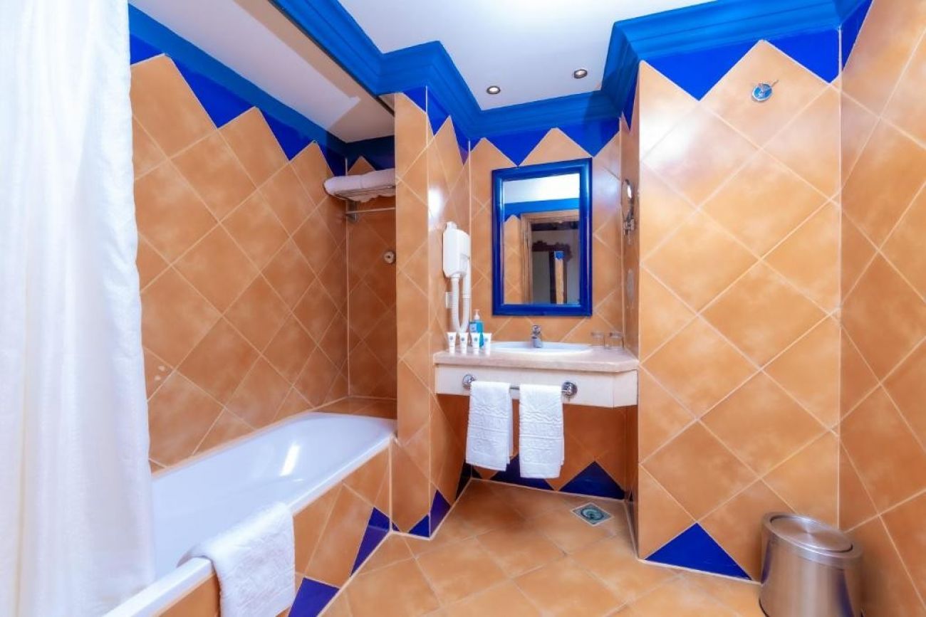 Family Room - Акцентите на семейната стая са две спални, свързани чрез врати. Стаите разполагат с двойно легло king size или две единични легла. Други удобства: балкон или тераса с изглед към градината, басейна или морето, баня с вана и душ, сешоар, климатик, сейф, телефон, сателитна телевизия, минибар. Капацитет: макс. 3 възрастни или 2 възрастни и 3 деца.