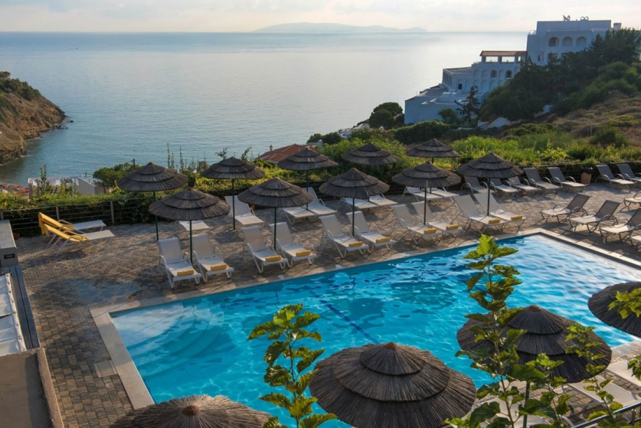 Хотел Blue Bay Resort се намира в централна точка, което го прави идеален като добра отправна точка за екскурзии до останалата част на Крит. На кратко разстояние ще откриете бившето рибарско селище Агия Пелагия (само на 2 км), а на 23 км ще намерите най-големия град на Крит, т.е. Ираклион. Хотелът е построен на хълм над заливат на Мононафтис, предлагащ спираща дъха гледка към безкрайното синьо море.