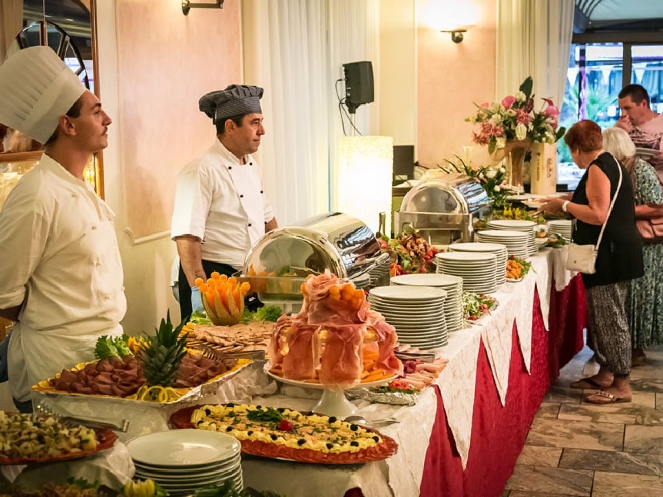 · HB: студена и топла, сладко-солена закуска на шведска маса; 4-степенна вечеря на шведска маса.