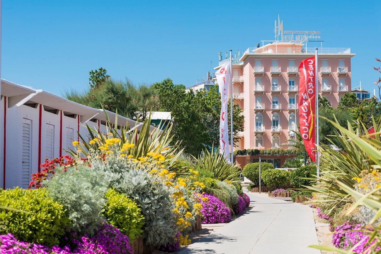 Хотелът се намира в сърцето на Марина Центро и само на 50 метра от плажа.. Хотел Милтън се радва на тихо местоположение, в непосредствена близост до дългогодишния Гранд Хотел, разположен в красива жилищна зона. Парк Фелини е само на няколко крачки: зелен оазис, където можете да се отпуснете или да се разходите по булевард Веспучи, осеян с дизайнерски магазини, уютни кафенета и добри ресторанти, и където се провеждат най-горещите летни събития. Хотел Milton е лесно достъпен от всяка посока и с всеки вид транспорт: центърът на града и жп гарата са само на 1,5 км и на 15 минути пеша.