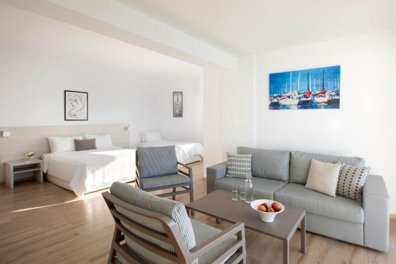 Всяка стая предлага директен или страничен изглед към Средиземно море и разполага с телевизор с плосък екран и сателитни канали. Всяка самостоятелна баня е с вана или душ, сешоар и безплатни тоалетни принадлежности.