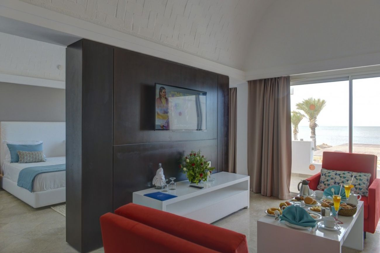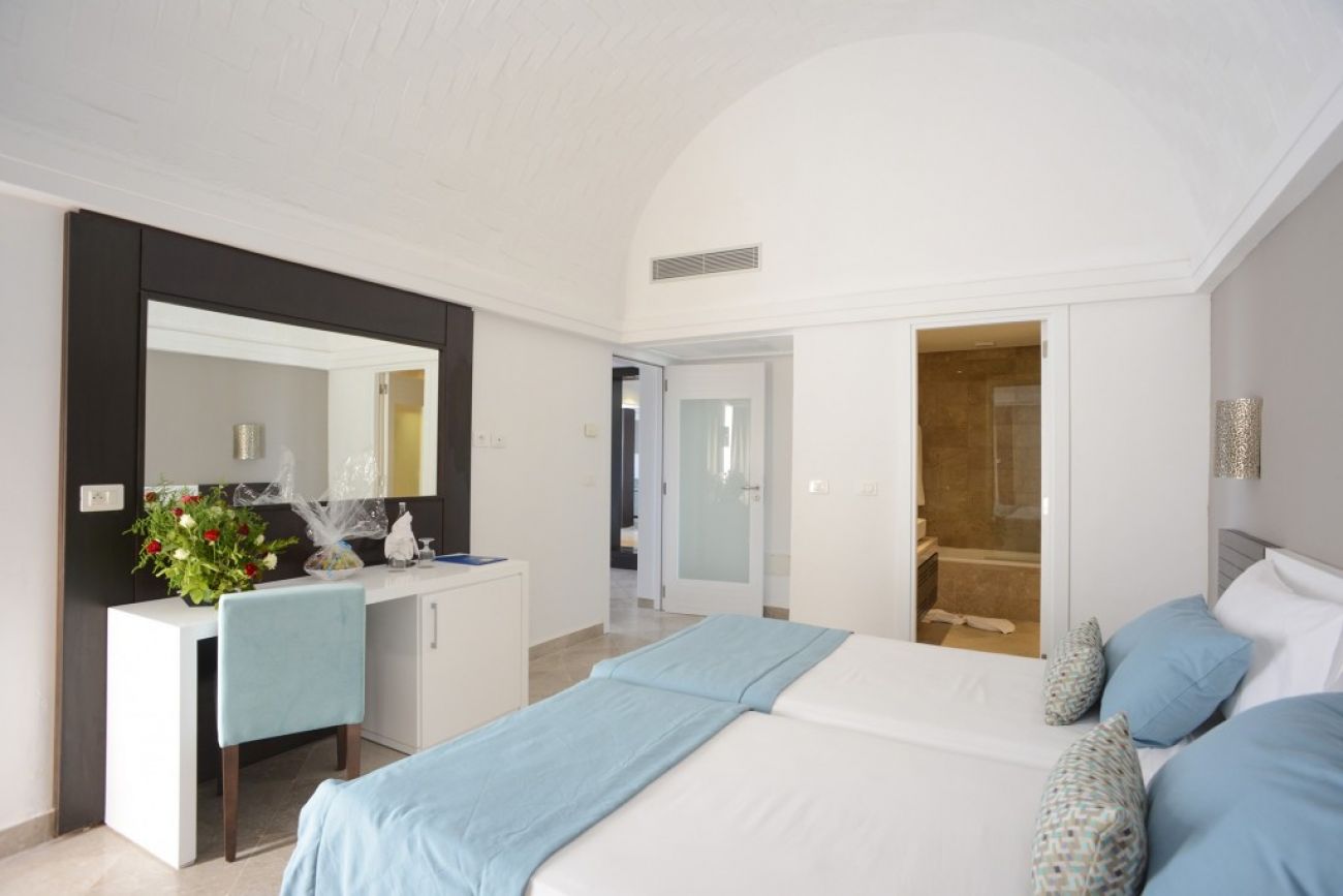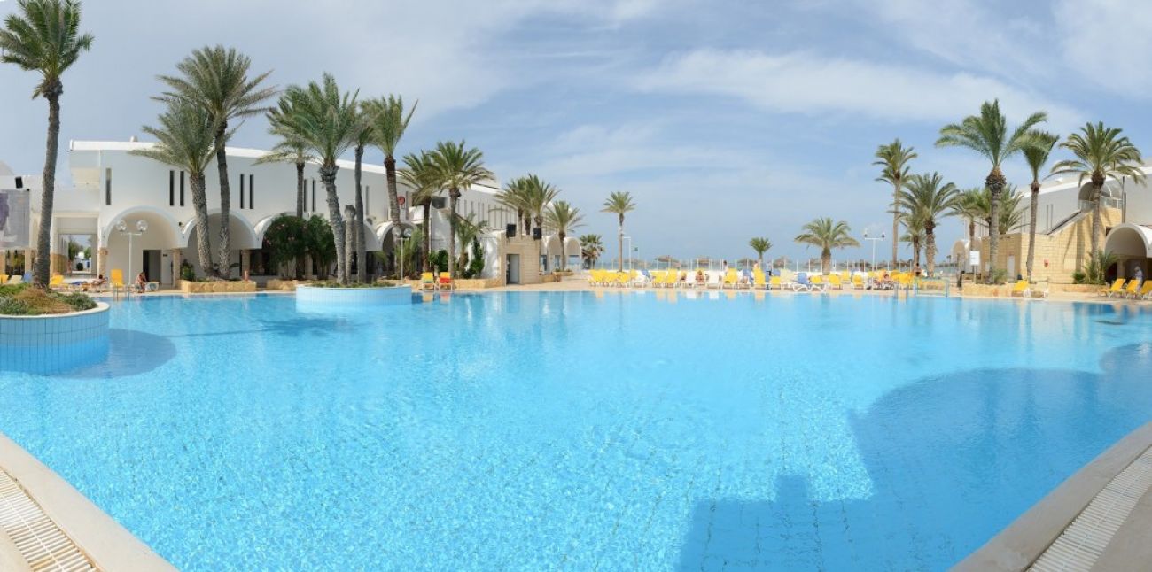 Разположение: Хотелът е разположен на 27 км от международното летище в Джерба и 19 км от Хумт Сук, намира се на първа линия в района на Тагерме, на 70 м от красивия плаж Сиди Марез и на 500 м от плаж Меридиана, на 6 км от Мидун. Последна реновация през 2017 година.