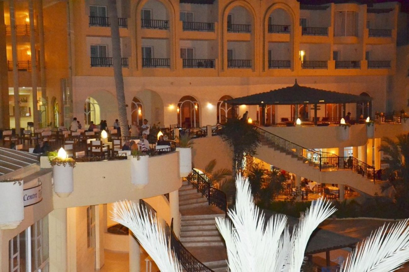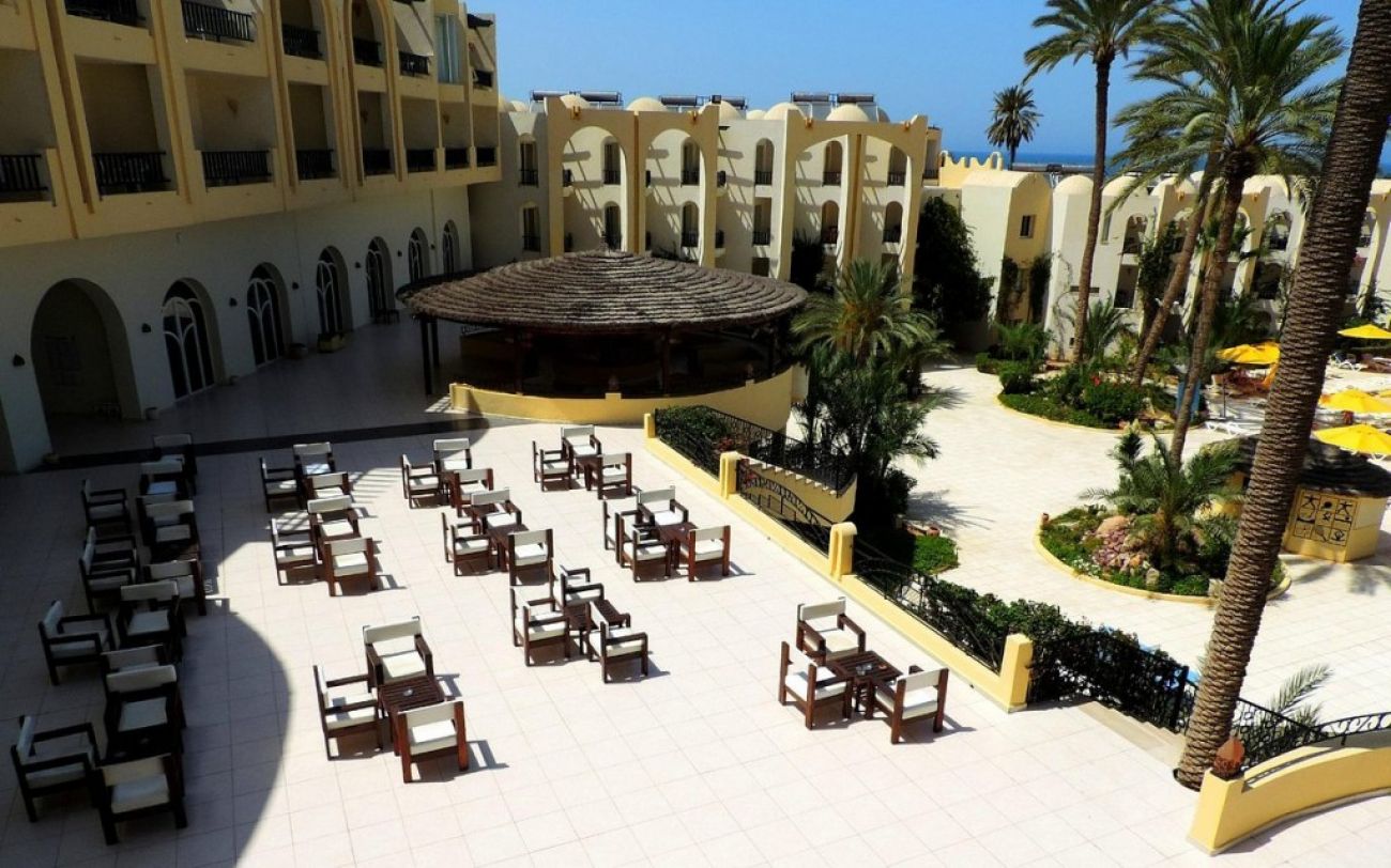 Разположение: Хотелът не се намира на о-в Джерба, разположен е в района на Зарзиз, на 60 км от международното летище в Джерба. Наличен е градски транспорт до острова.