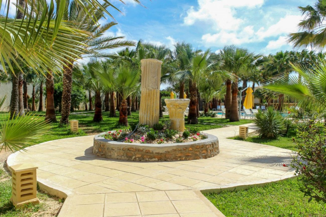 Разположение: Хотела е разположен на източното крайбрежие на остров Джерба, ситуиран в палмова горичка съчетаващ екзотика, чар и спокойствие. Намира се на 3 км от град Мидун, на 14 км от гр. Хумт-Сук и на 20 км от международното летище Джерба-Зарзис. В близост: голф, боулинг, казино.