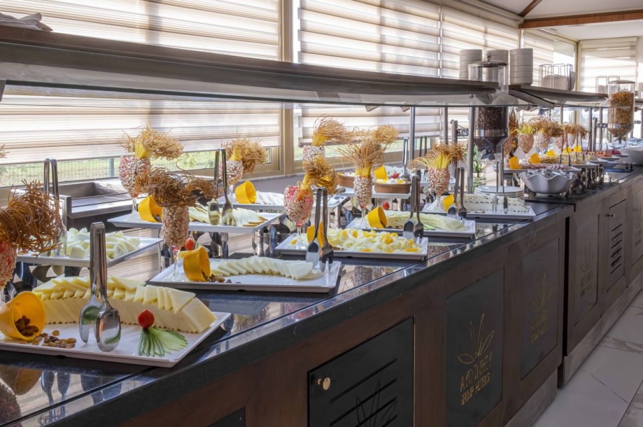 На територията на хотела: Основен ресторант, 2 а-ла-карт ресторанта (турски и рибен - с предварителна резервация, при настаняване за една седмица едно посещение на един ресторант е безплатна, 01.09-15.09 ), 4 бара, дискотека, 2 открити басейна, закрит басейн, 4 водни пързалки, SPA център, 2 конферентни зали, Интернет-кафе, фризьорски салон, лекар на повикване, магазини, библиотека, пране.