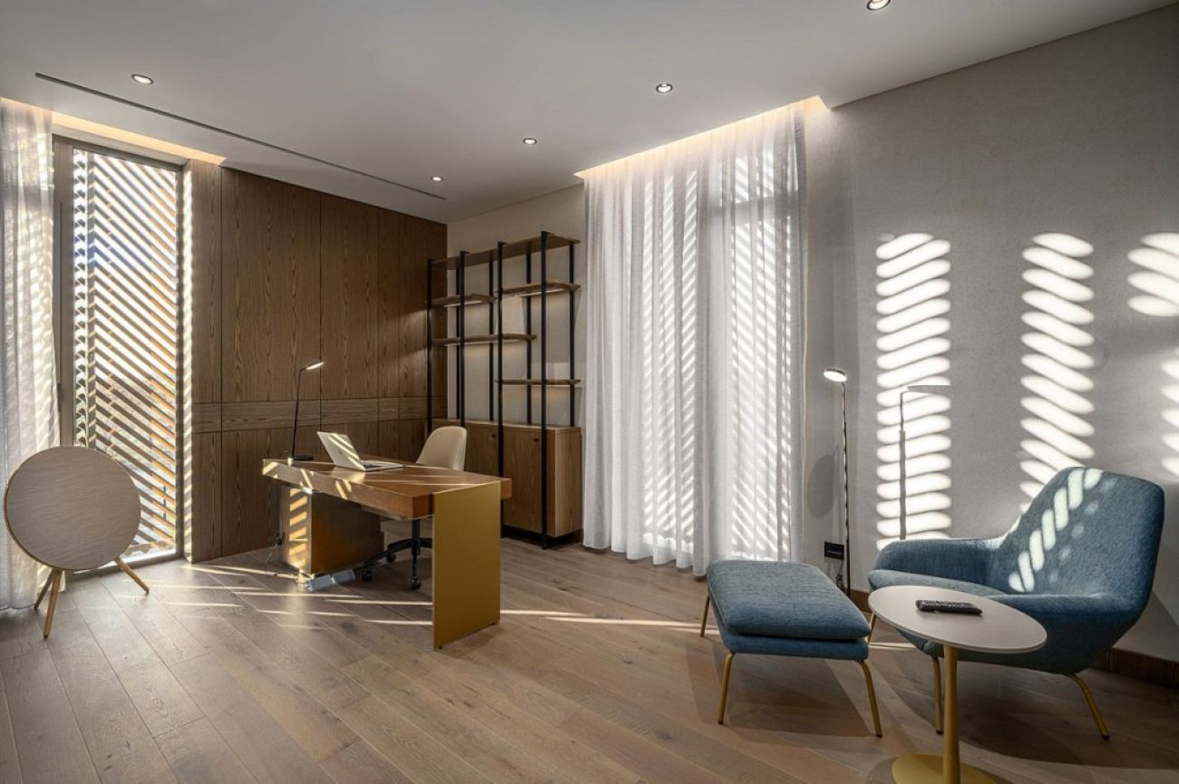 - Вилата е оборудвана с интелигентна система за автоматизация. В спалнята има 55-инчов LCD Ultra HD Smart IP телевизор, Bluetooth звукова система Bang & Olufsen, Chromecast, сателитно излъчване, централен климатик, телефон, ютия и дъска за гладене. Подовата настилка в стаята е паркет/мрамор.
