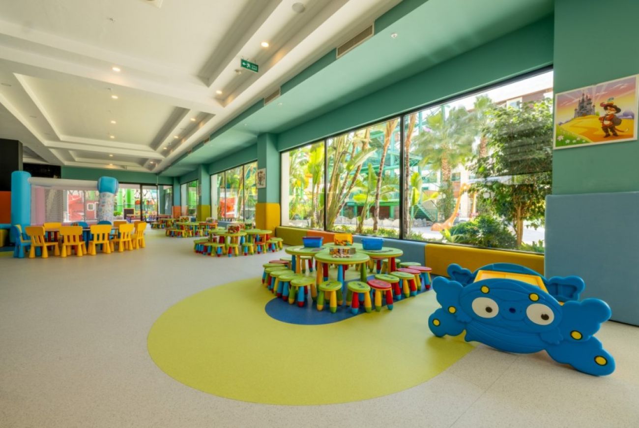 Курортът и спа носи името си от кристално чистите води на Средиземно море. Намира се на брега на морето и разполага със собствен пясъчен плаж с дължина 500 метра. Курортът разполага с 3 открити басейна, аквапарк с водни пързалки и СПА център. Баровете предлагат богат асортимент от алкохолни и безалкохолни напитки. Има и 4 ресторанта, предлагащи турска, далекоизточна, италианска и американска кухня, включваща турска баня, сауна и парна баня. Те също така предоставят масажни и козметични услуги. Хотелът разполага с игрище за плажен волейбол, тенис корт, фитнес център и игрище за мини голф. На място има детски мини-клуб, детски басейн, детска площадка, мини-дискотека и мини-кино. През целия ден има анимационни програми за деца и възрастни. Хотелът е подходящ за семейна, романтична или младежка почивка.