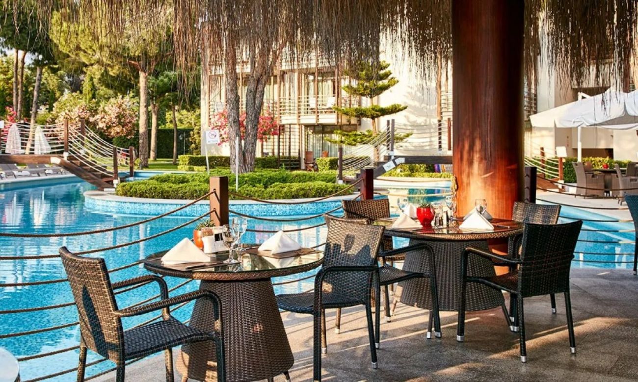 Разположение: Хотелът се намира на 40 км от междунардно летище Анталия, на 50 км от центъра на Анталия, на 7 км от Белек, на брега на морето. Построен е през 1997 г. върху територия с обща площ от 190.000 m².