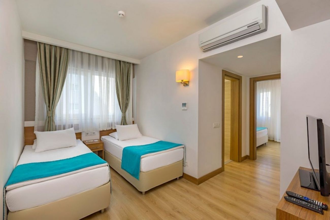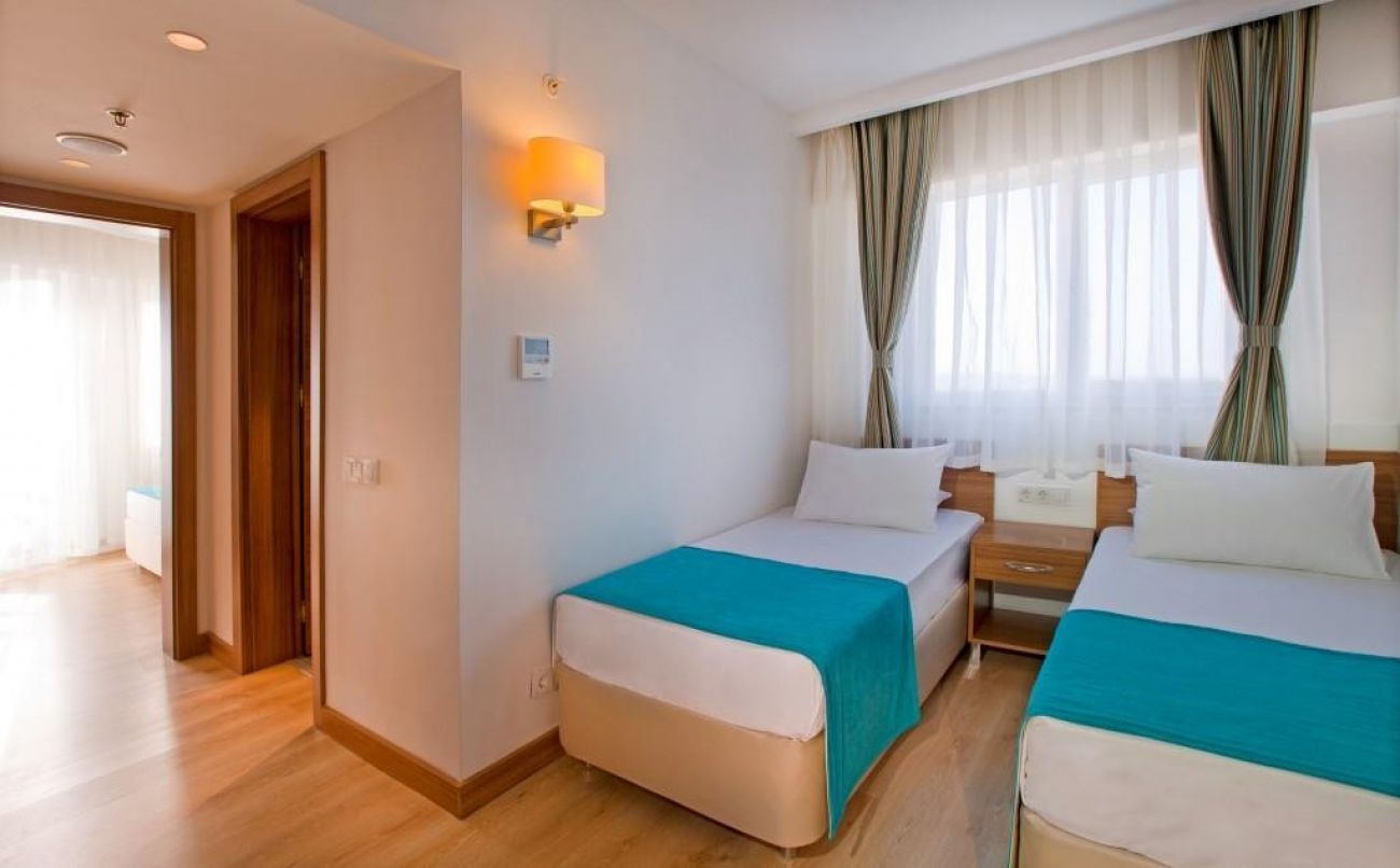 Хотелът разполага с общо 896 стаи, разположени в осем 9-етажни блока, от които Standard room (без балкон - 22 м2), Family Deluxe (2 спални, 1 баня, балкон - 36 м2,), Family Elite (2 спални, хол, 1 баня, балкон - 50 м2).Всички стаи са оборудвани с климатик, телевизор, телефон, баня с душ, сешоар, сет за чай/кафе, минибар (безплатен), сейф (безплатен).Почистване на стаите - всеки ден, смяна спалното бельо и кърпите - 2 пъти в седмицата.