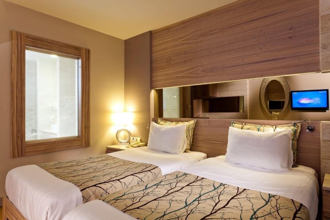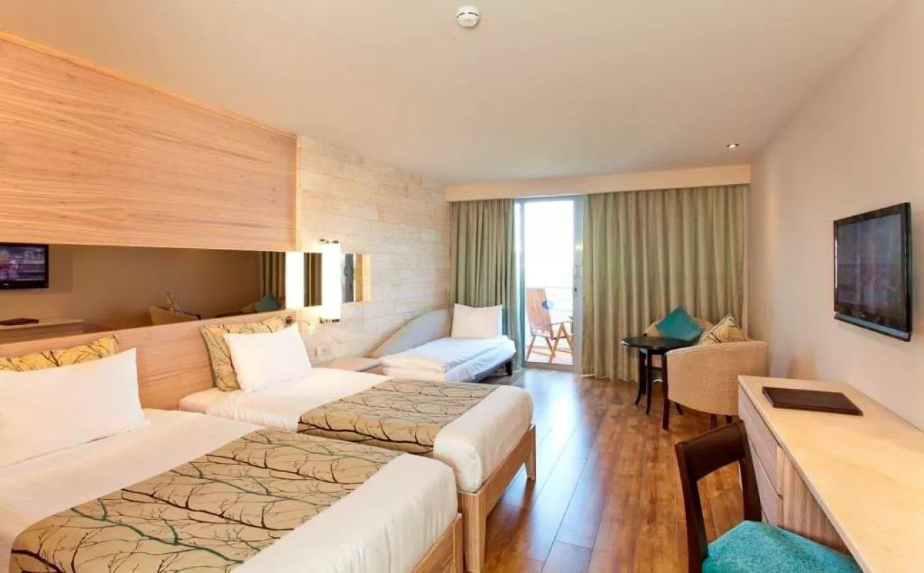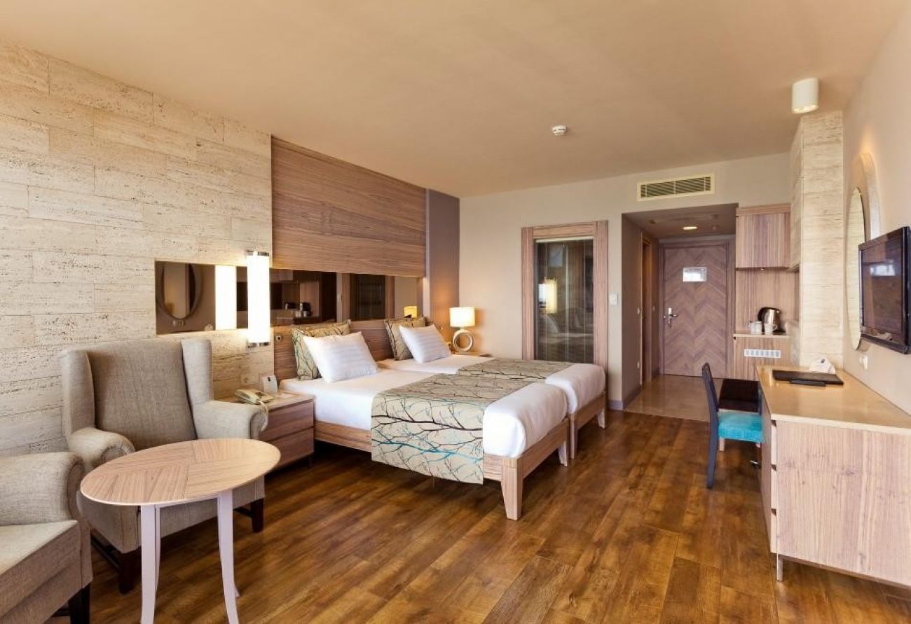 В стаите: Състои се от една основна 9 етажна сграда, оборудвана с 6 асансьора и общо 303 стаи:Suit room, Terrace room, Gardenview room, Lateral seaview room, Seaview room, Family room. В стаята има централен климатик, телевизор, телефон, баня с душ, сешоар, мини бар (вода, безалкохолни напитки и бира - зареждат се 3 пъти седмично, безплатно), сейф (безплатно), балкон, сет за кафе и чай, под - ламинат.