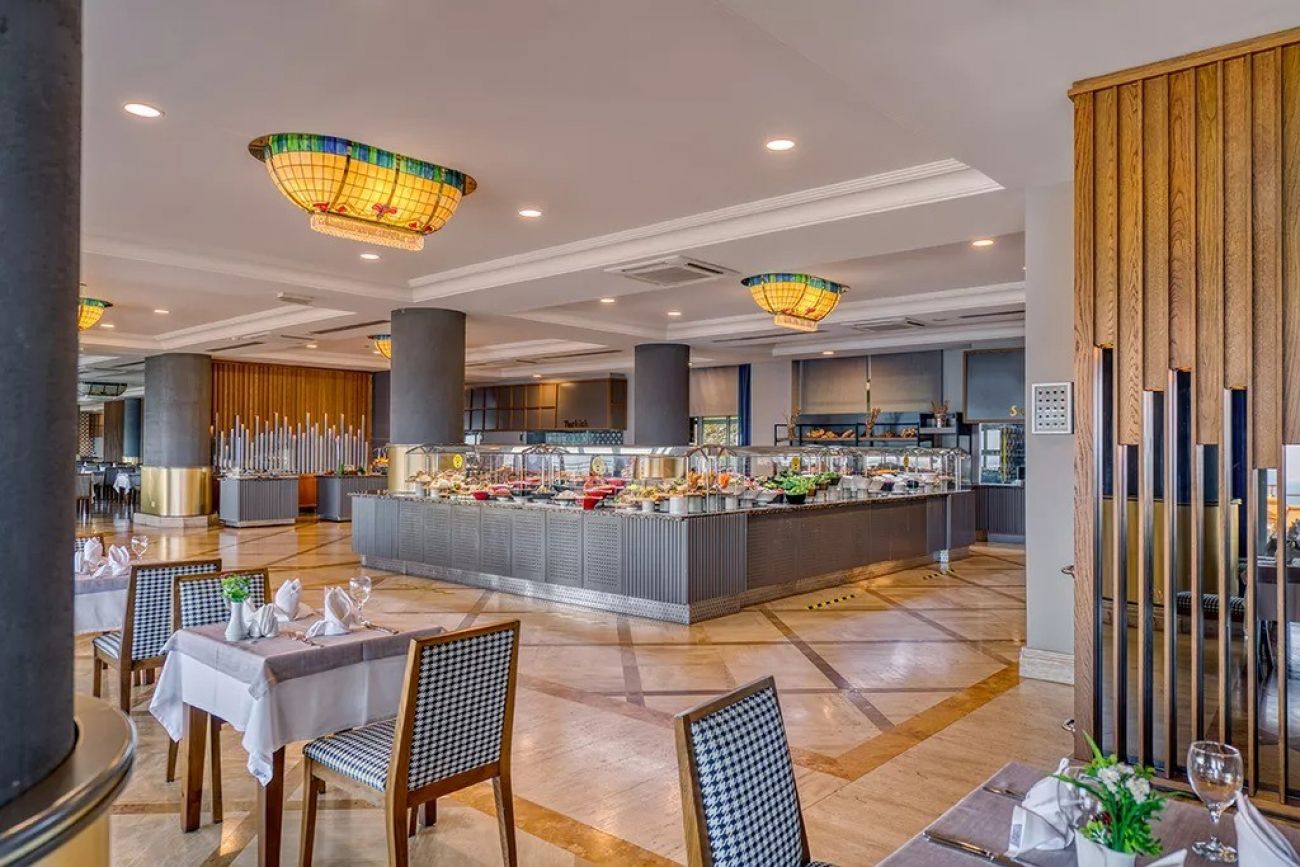 Изхранване: Ultra All Inclusive - закуска, обяд и вечеря на блок маса, допълнителни междинни хранения и неограничена консумация на местни алкохолни и безалкохолни напитки, някои вносни алкохолни напитки. Разполага и с различни ресторанти: Main Restaurant, A´la Carte Restaurants, Gozleme House, Patisserie.