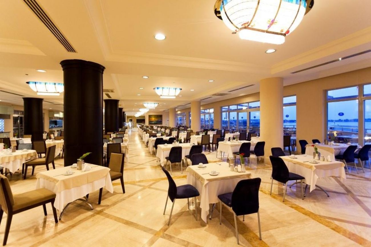 На територията на хотела: Основен ресторант, 3 ресторанта a-la-carte (турски, рибен, международен, с предварителна резервация, за едноседмичен престой едно безплатно посещение на един ресторант), 4 бара, дискотека, сладкарница, открит басейн, закрит басейн, дискотека (3 пъти в седмицата), лекарски кабинет, SPA център, фризьорски салон, 2 конферентни зали.