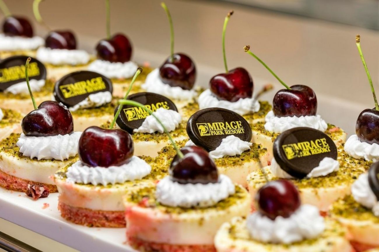 Разположение: Mirage Park Resort е петзвезден хотел, разположен в живописната местност на Кемер. Със своето прекрасно местоположение в подножието на планината Тахтали и близостта до чистите плажове на Средиземно море, хотелът предлага идеалната среда за релаксация и забавление. Намира се на 45 км от летище Анталия, на 7 км от Кемер, в района на Гьойнюк, на брега на морето, с обща площ 110 000 м².