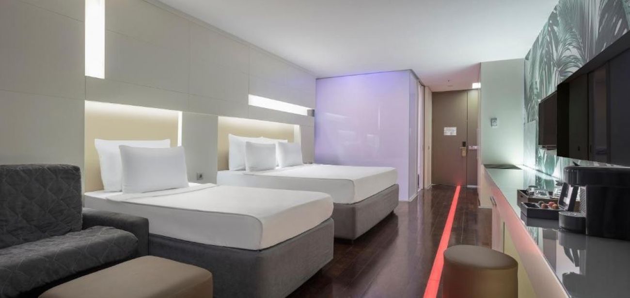 В стаите: Хотелът разполага с общо 579 стаи - 551 Superior Room Sea / Land View (32м2), 18 Family Suite Sea / Land View (56м2), 8 Deluxe Suite Sea View (60м2), 2 King Suite Sea View (120м2). Всички стаи са оборудвани с климатик, телевизор, телефон, баня с душ, сешоар, сет за кафе/чай, минибар, сейф, балкон.