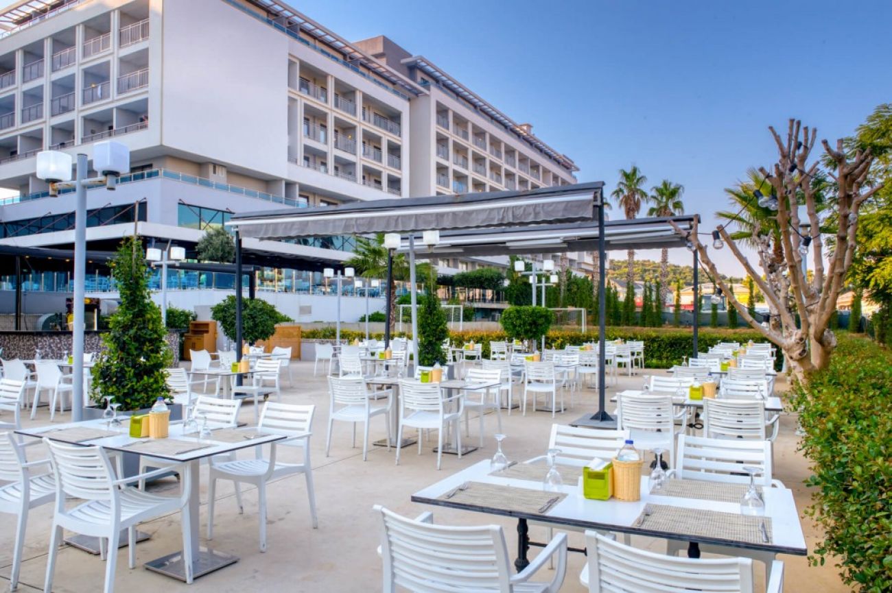 В допълнение към басейните, хотелът разполага с получастен пясъчен плаж с награда „Син флаг“, предлагащ достъп до кристално чисто море. За по-ексклузивно преживяване, в района на залива са на разположение VIP салони, осигуряващи пълно уединение и релаксация.