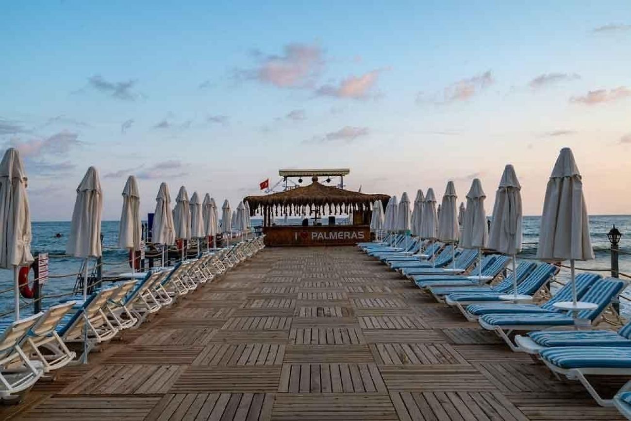 PALMERAS BEACH HOTEL 5* е популярен сред българските туристи хотел, разположен в курортната зона на Конаклъ, на 109 км от международното летище на Анталия, на 13 км от градския център на Алания, на брега на морето.