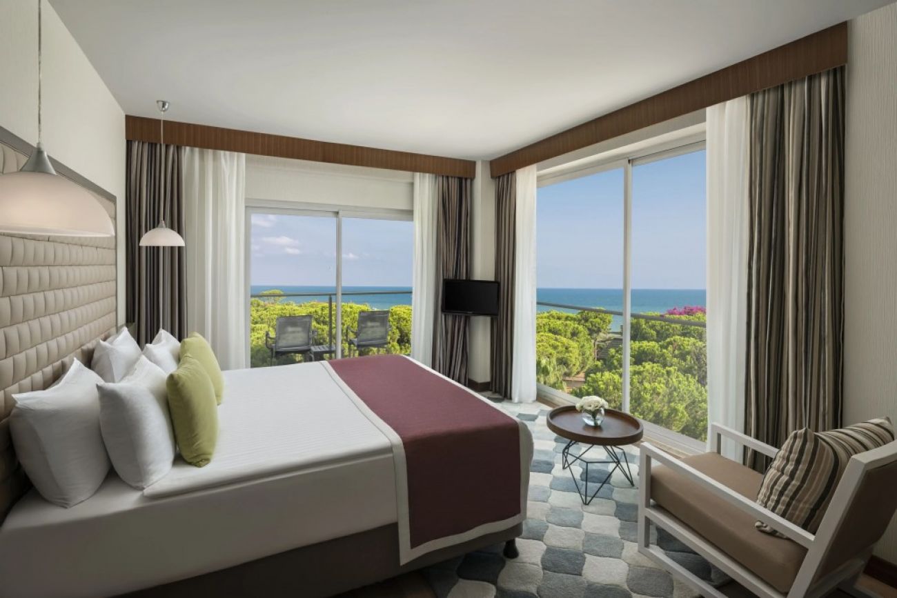В стаите: Състои се от един 5-етажен корпус, и 2-етажни вили. Разполага с общо 363 стаи, които са оборудвани с климатик - централен (Main Building); индивидуален (Villas); LCD телевизор, телефон, чехли, баня с душ, сешоар, мини-бар безплатно (ежедневно зареждане с безалкохолни напитки и бира), сейф (безплатно), сет за кафе и чай, балкон/тераса, WI-FI (безплатно), под - ламинат. Почистване на стаите - ежедневно, смяна на спално бельо - 3 пъти седмично.