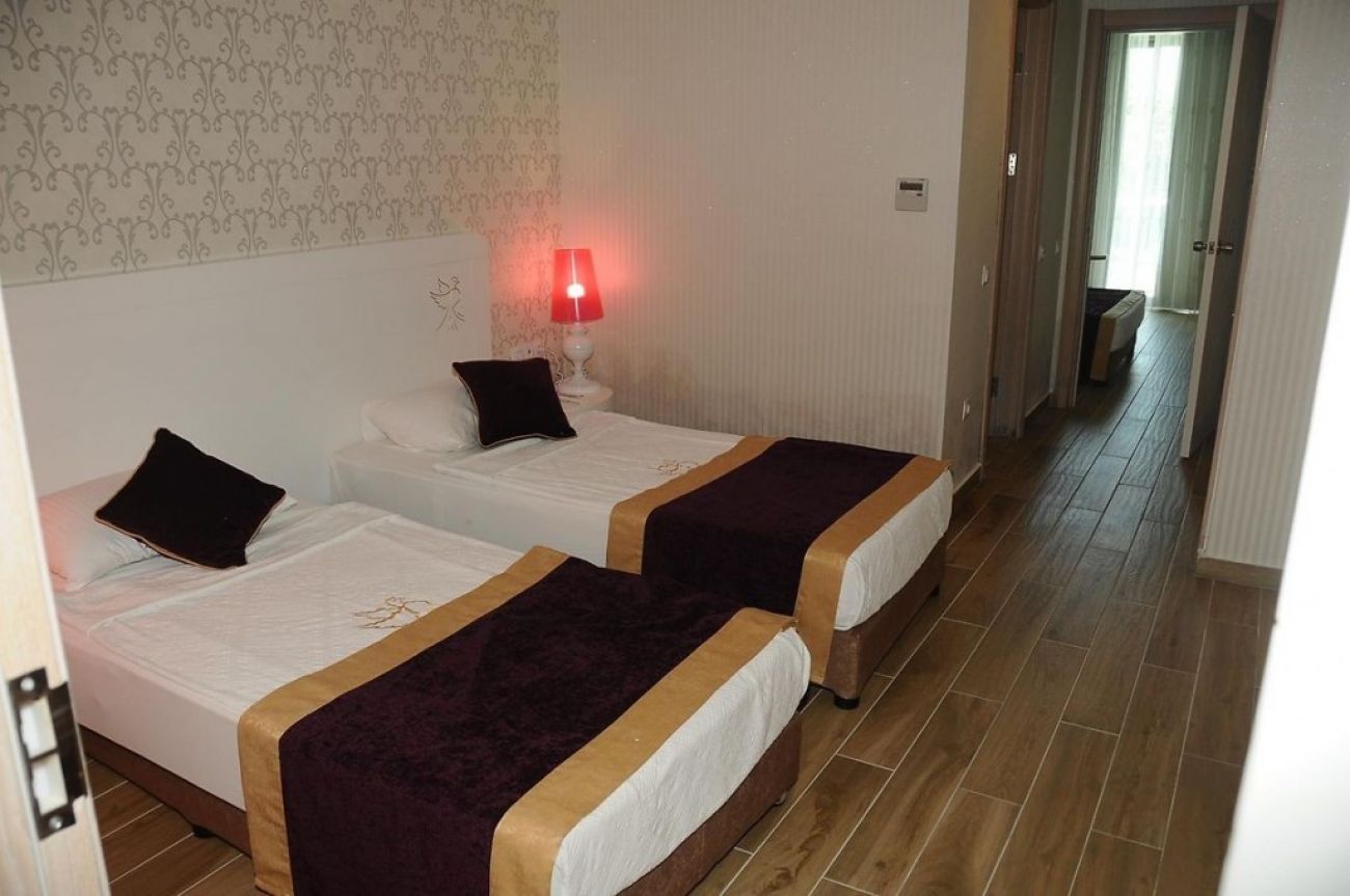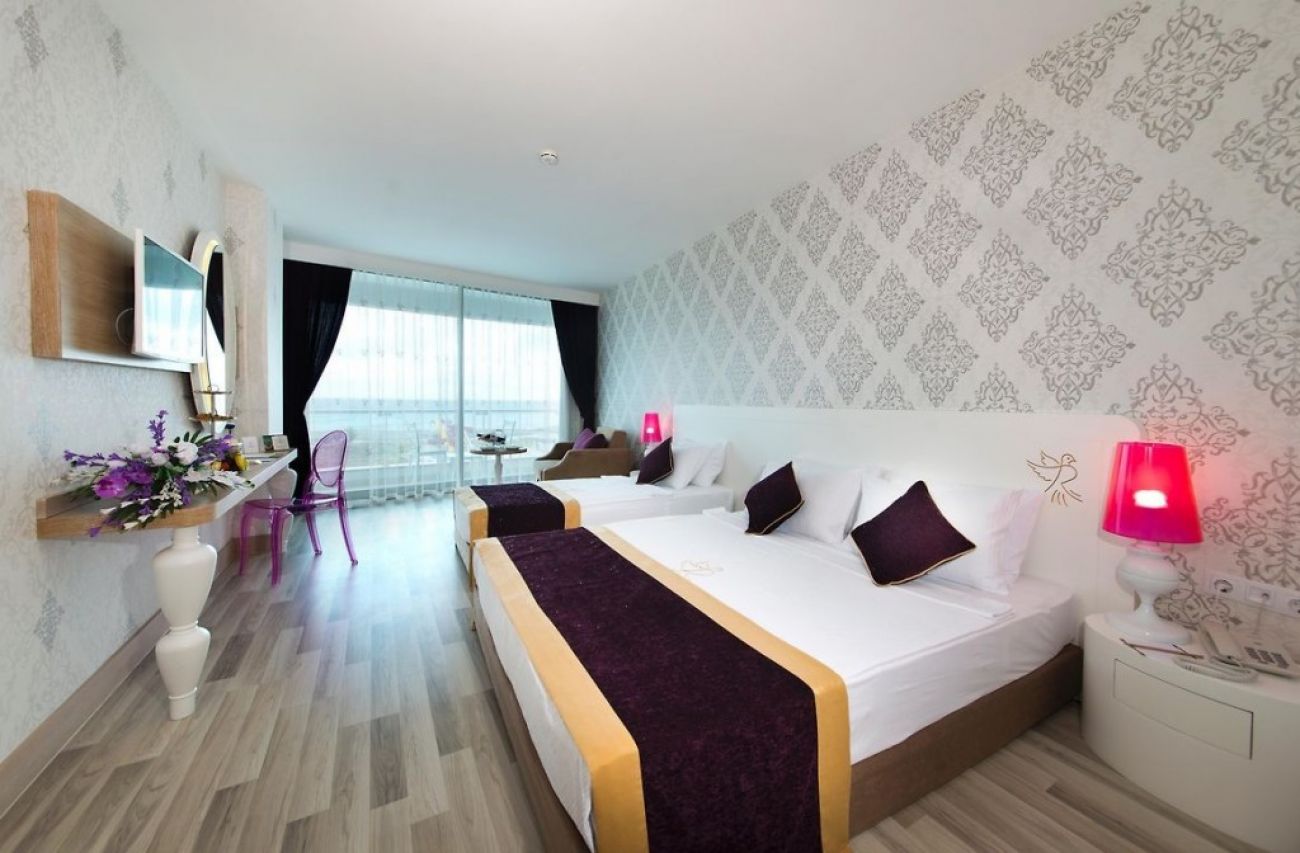 Разположение: Хотелът се намира на 90 км от международното летище на Анталия, на 30 км от стария град на Сиде, на брега на морето. Построен е през 2013 г. върху територия с обща площ от 42000 м².