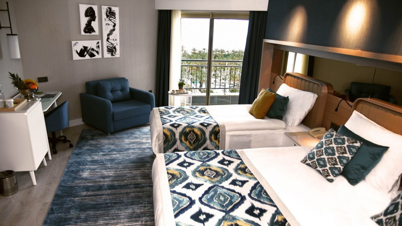 Разположение: Хотелът е разположен на 15 км от летището в Анталия и на 17 км от центъра, на брега на морето. Построен е през 2005 г. върху територия с обща площ от 72 000 м2. Състои се от една 10-етажна сграда. Направена е пълна реновация през 2019 г.