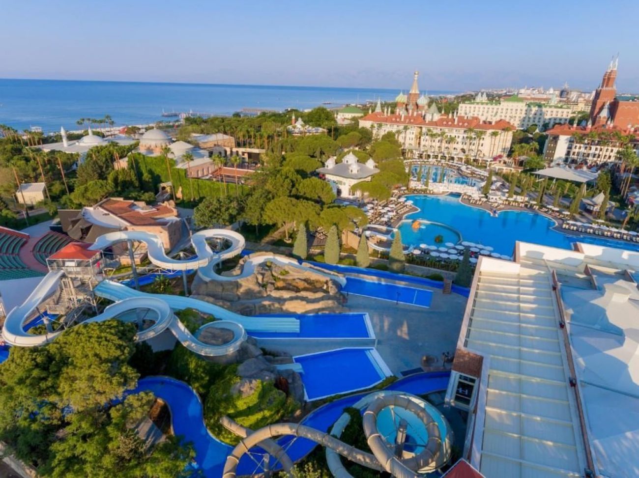 Хотелски комплекс Swandor Hotels Resorts Topkapi Palace е разположен на плажа Лара в Кунду и предлага открит и закрит басейн и турска баня. Предлага безплатен WiFi в общите части и стаи с минибар и телевизор със сателитни канали. Всички климатизирани стаи и суитове на хотел Swandor Hotels Resorts Topkapi Palace са напълно реновирани и обновени през април 2019г. и разполагат със сейф, телефон и собствена баня с вана и сешоар. Предлагат се и стаи за гости с намалена подвижност. В ресторанти Safir и Hanedan се предлага международна и турска кухня. Хотелски комплекс Swandor Hotels Resorts Topkapi Palace разполага с фитнес център и спортни съоръжения, включително игрища за баскетбол, мини футбол и плажен волейбол. Предлагат се също масажи и детска площадка. Срещу допълнително заплащане се предлага ползване на тенис кортове и тенис екипировка. Вечер амфитеатърът на хотела предлага концерти на живо. В Sultan Ahmet Square можете да се насладите на музика, танци и напитки. В околността има различни забавления. Хотел Swandor Hotels Resorts Topkapi Palace е на 20 км от летище Анталия. На място има безплатен собствен паркинг.