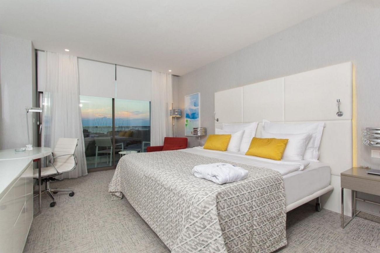 В стаите: Елегантно обзаведени и с иновативен дизайн, всички 374 стаи на хотела разполагат с климатик, LED телевизор със сателитен приемник, телефон с директно избиране, баня с душ или вана, сешоар, минибар, сейф, сет за приготвяне на чай и кафе, както и безжичен интернет. Ежедневно почистване на стаите, смяна на спалното бельо и хавлиите за баня – няколко пъти в седмицата.