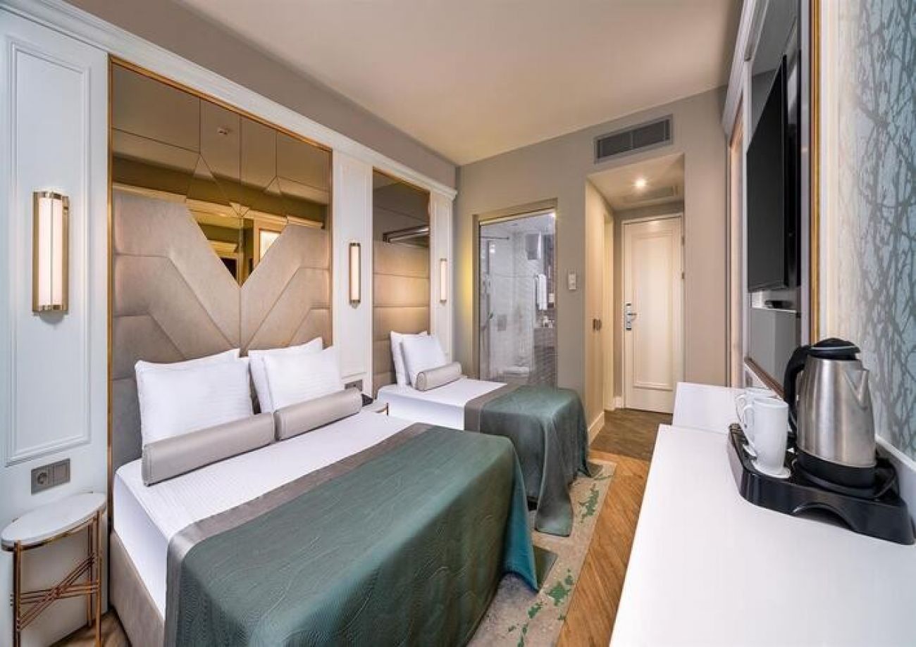 Хотелът се състои от едно основно четириетажно здание и двадесет и три двуетажни клубни здания с общо 366 стаи – Deluxe Terrace Room With Jacuzzi 88m2, 4p., Deluxe Room Side Sea View 27 m2, 4p., Deluxe Room Land View 27m2, 4p., Deluxe Connection Room Partial View 58 m2, 5p., Deluxe Room Without Balcony 25 m2, 3p., Deluxe Room Partial View 27 m2, 4p.. Всяка стая е оборудвана с климатик, телефон, телевизор, баня с душ/вана, сейф ( безплатно), мини-бар.Почистване на стаите - всеки ден смяна на кърпи и спално бельо – 3 пъти в седмицата.