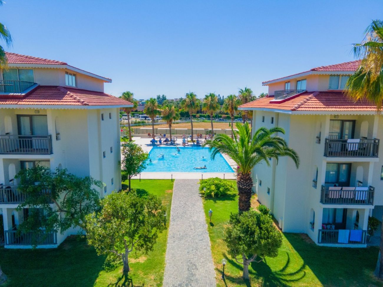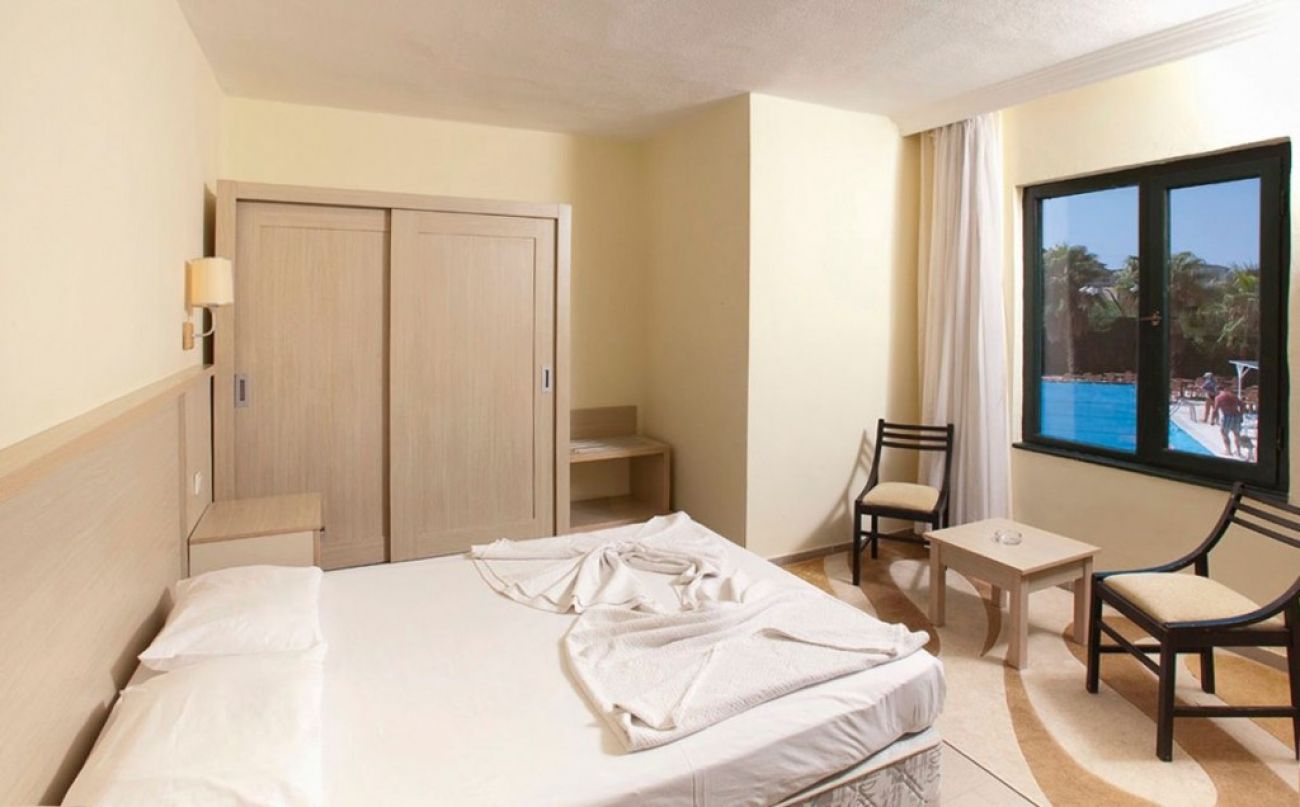 В стаите: Състои се от една основна 5-етажна сграда и шест 4-етажни блока и общо 203 стаи. Всички стаи са оборудвани с балкон, климатик, телевизор, телефон, баня с душ/вана, сешоар, мини бар (презарежда се с минарелна вода), сейф (срещу заплащане), под – лаимиран паркет.