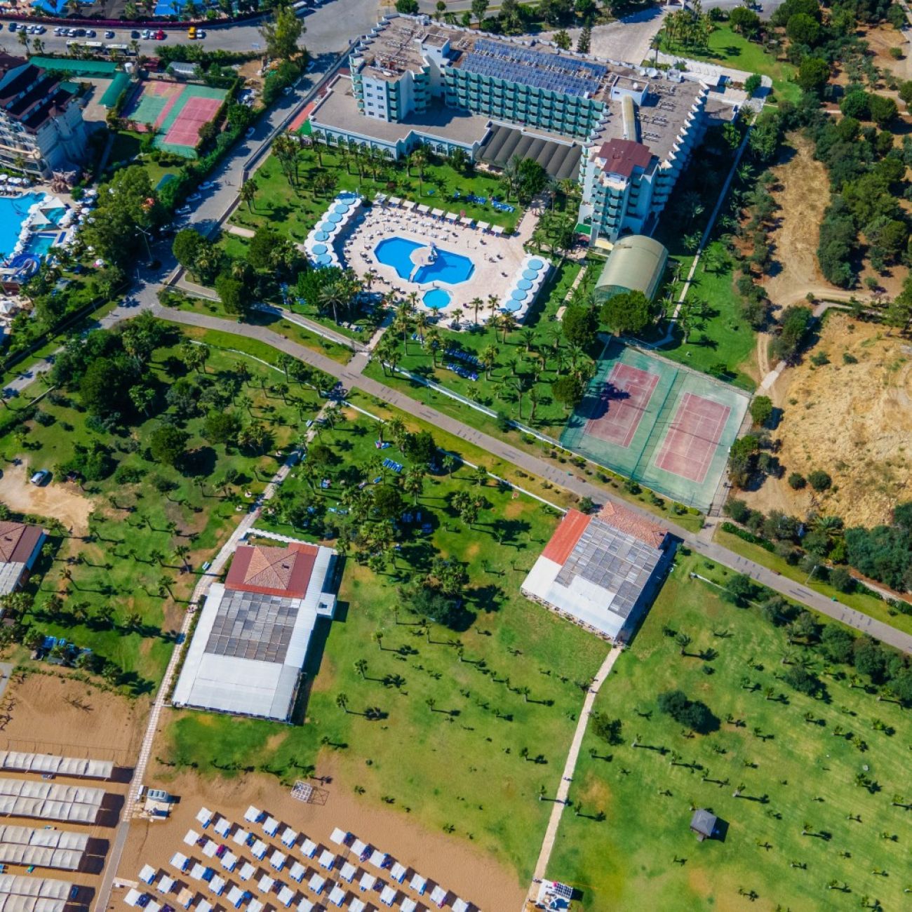 На територията на хотела: Основен ресторант, снек ресторант на плажа, 3 бара, 3 а ла карт ресторанта, 2 открити басейна, 2 водни пързалки, библиотека, магазин, фризьорски салон, лекарски кабинет, конферентна зала, 24 часова рецпеция, паркинг, WiFi интернет.