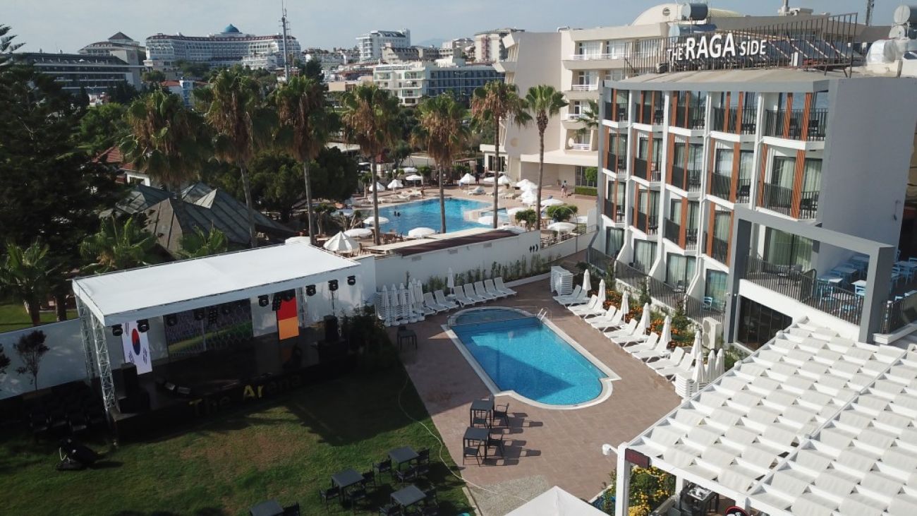 The Raga Side Ultra е с изглед към плажа. Ол инклузив предлага 5-звездно настаняване в Сиде и разполага със сезонен открит плувен басейн, фитнес център и градина. На разположение на гостите има ресторант, тераса, сауна и турска баня. На разположение на гостите има денонощна рецепция, летищни трансфери, рум-сървиз и безплатен WiFi на цялата територия. Всяка стая в хотела разполага с балкон. Всяка стая разполага с климатик и плоскоекранен телевизор, а някои стаи в The Raga Side Ultra Ол инклузив стаите предлагат изглед към града. Стаите за гости са снабдени със спално бельо. Сутрин се сервира закуска на шведска маса. В Raga Side Ultra All Inclusive можете да играете тенис на маса и дартс, както и да наемете автомобил. Плажът Кумкой е на 300 метра от хотела, а Зеленият каньон е на 23 километра. Най-близкото летище е Анталия, на 69 км от The Raga Side Ultra All Inclusive