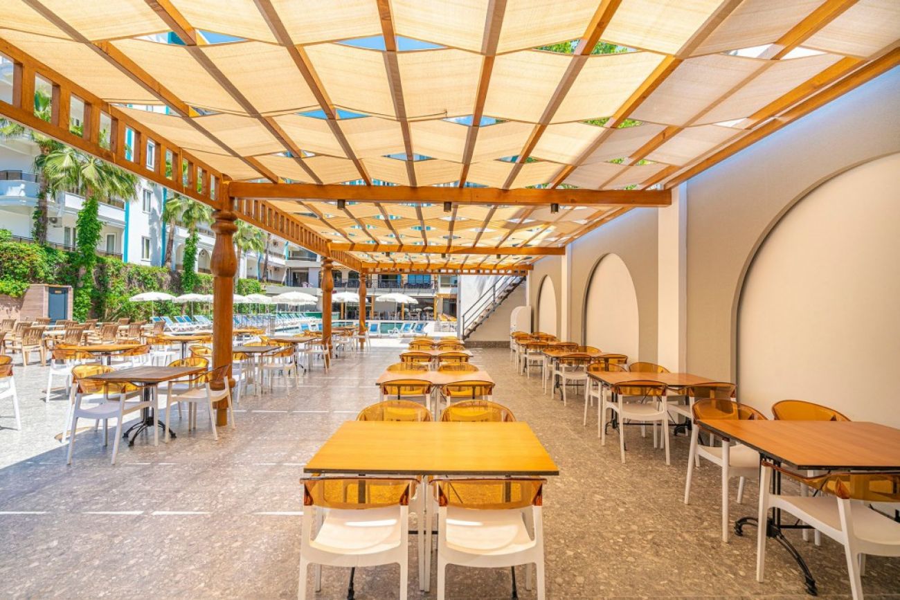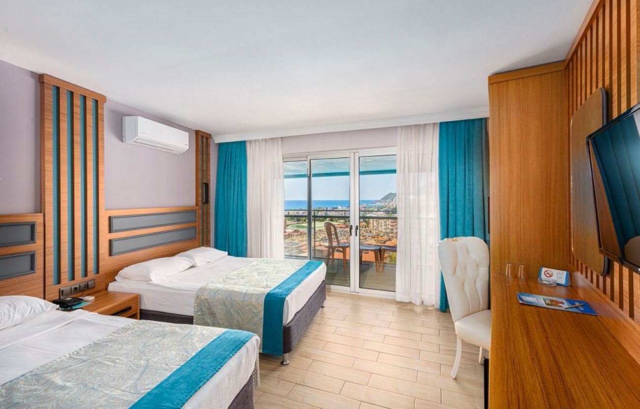 Разположение: Намира се в идеалния център на Алания, на трета брегова линия. Хотелът разполага с шатъл до плажа, а летище Анталия е на около един час с кола или автобус. На пешеходно разстояние има множество заведения, ресторанти, луна парк, Алания Аквапарк, музеи и исторически забележителности.