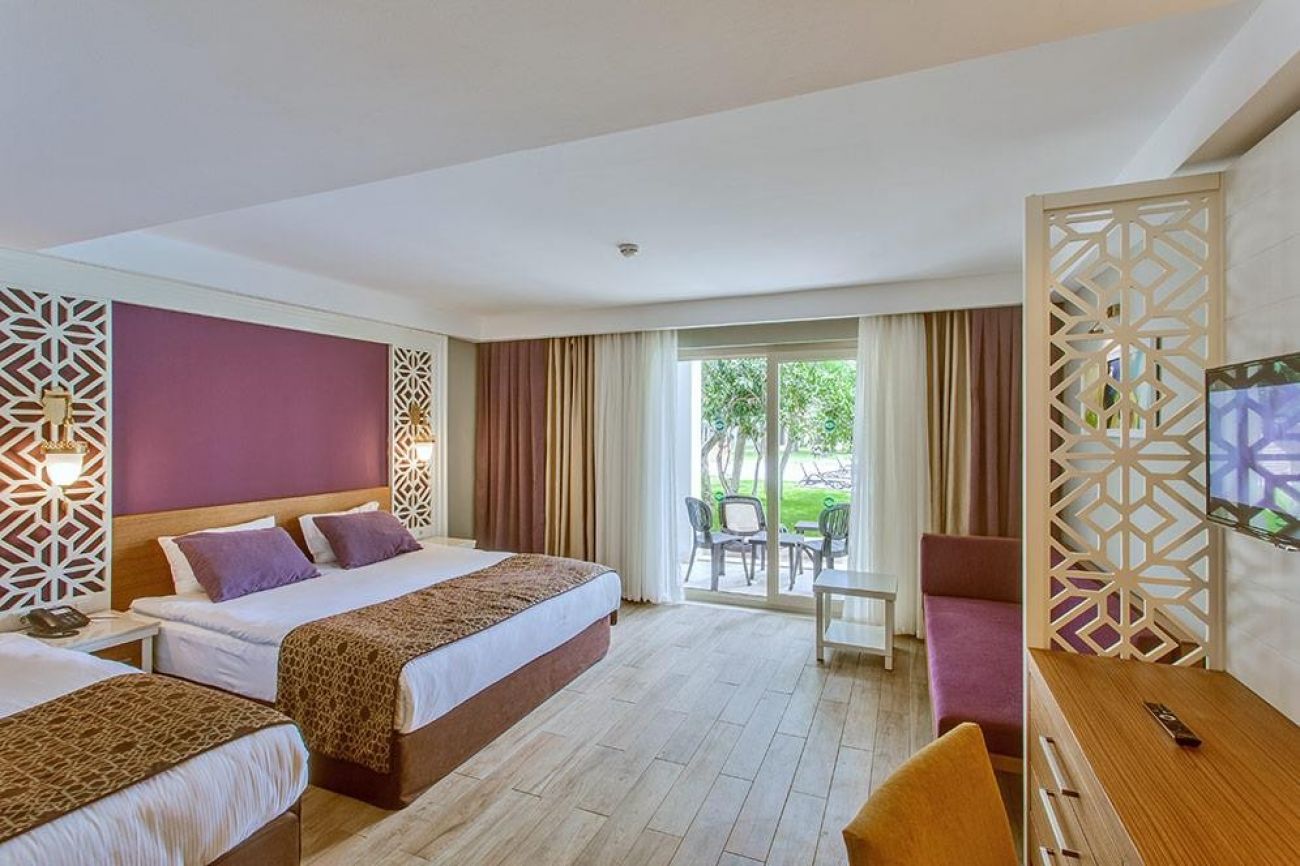 Безплатни услуги: Wi-Fi (стаи и общи части), минибар, турска баня, сауна, парна баня, фитнес, гимнастика, аеробика, воден фитнес, басейни и пързалки, волейбол, баскетбол, тенис на корт, мини футбол, стрелба с лък, дартс, анимация, музика на живо.