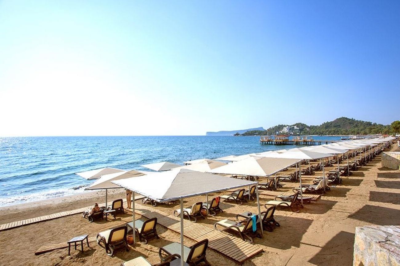 Собствен, пясъчно-чакълест плаж с дължина на ивицата 450 м. Чадъри и шезлонги на плажа и при басейна - безплатно. Плажни кърпи - безплатно.