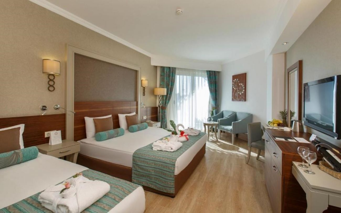 В стаите: Хотелът разполага с 469 стаи, разпределени в две четириетажни сгради. Всички стаи са оборудвани с климатик, LCD телевизор със сателитен приемник, телефон с директно избиране, баня с душ, сешоар, минибар, сейф срещу заплащане, сет за приготвяне на кафе и чай, безплатен безжичен интернет, балкон. Ежедневно презареждане на минибара с минерална вода и безалкохолни напитки.