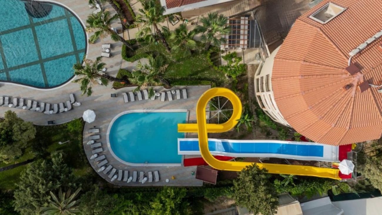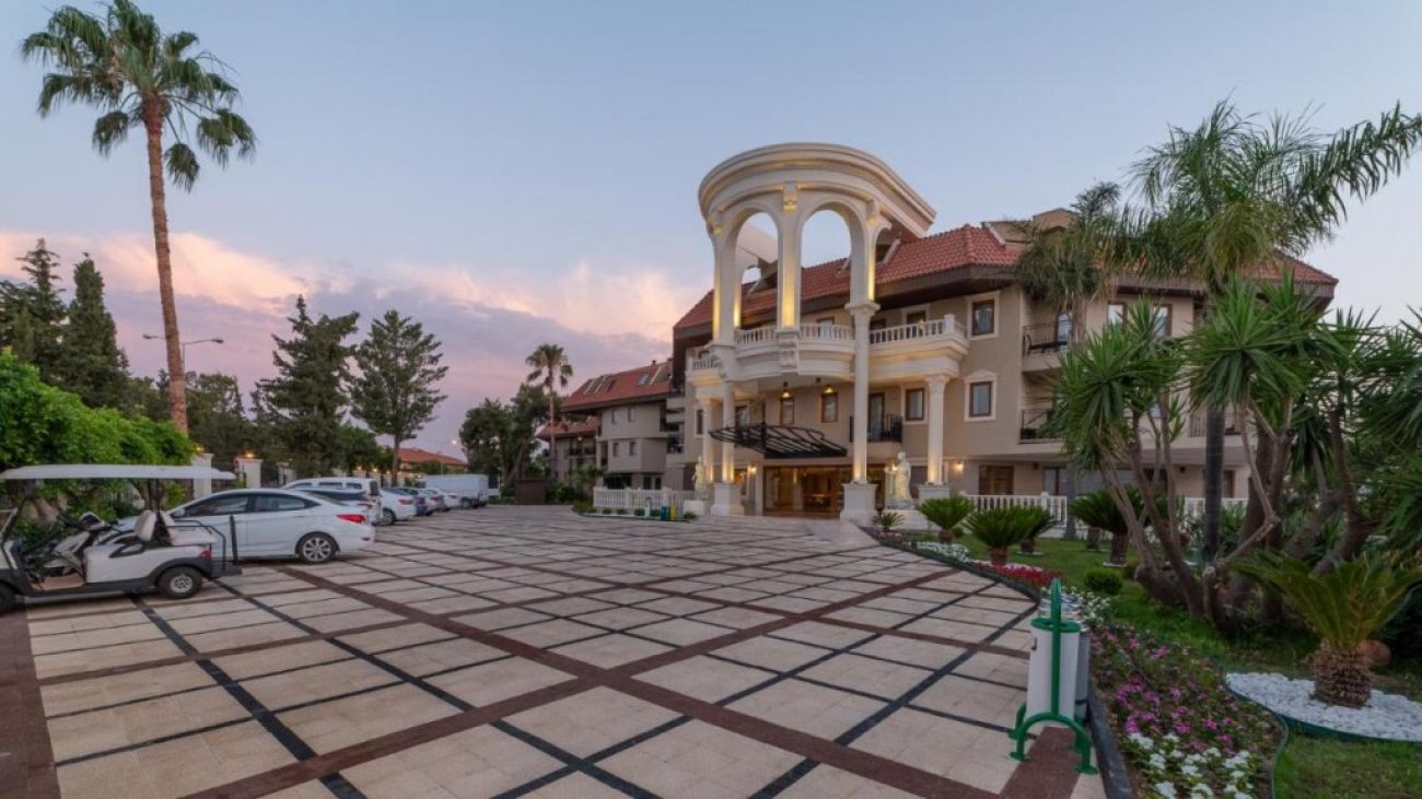 Комфортен хотел с просторна зелена площ в Сиде. Развита инфраструктура, частен пясъчен плаж. Подходящо за почивка с деца.