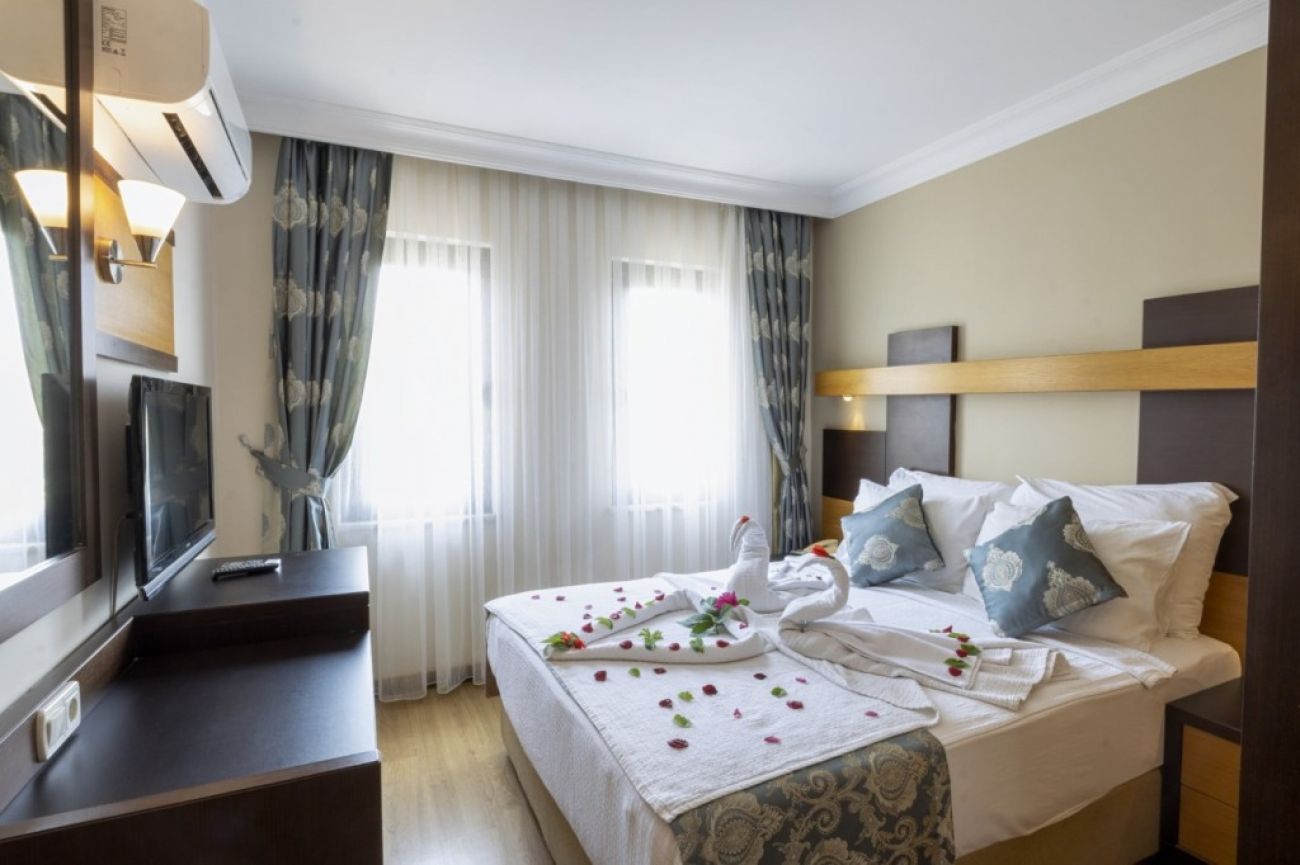 Разположение: На 5 минути пеша до плаж Клеопатра, в самия център на Алания, хотелът е в близост до много забавления, ресторанти и търговски зони.