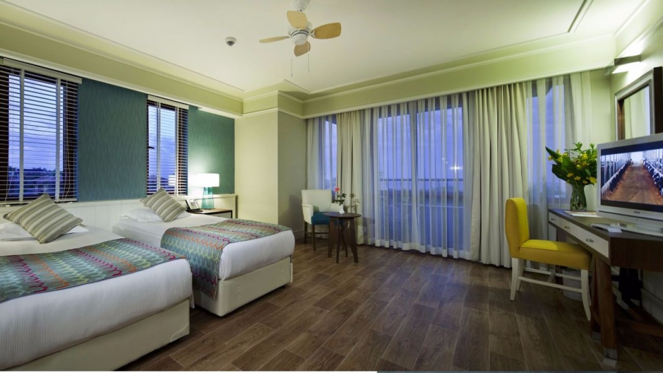 В стаите: Разполага с общо 540 стаи, разположени в 22 блока на 3 етажа - от които 433 стандартни стаи, 72 малки семейни стаи, 33 големи семейни стаи и 2 апартамента. Всички стаи разполагат с централно отопление, сателитна телевизия, LCD телевизор, сейф, сешоар, телефон с директно избиране, минибар, бойлер, чай и кафе.