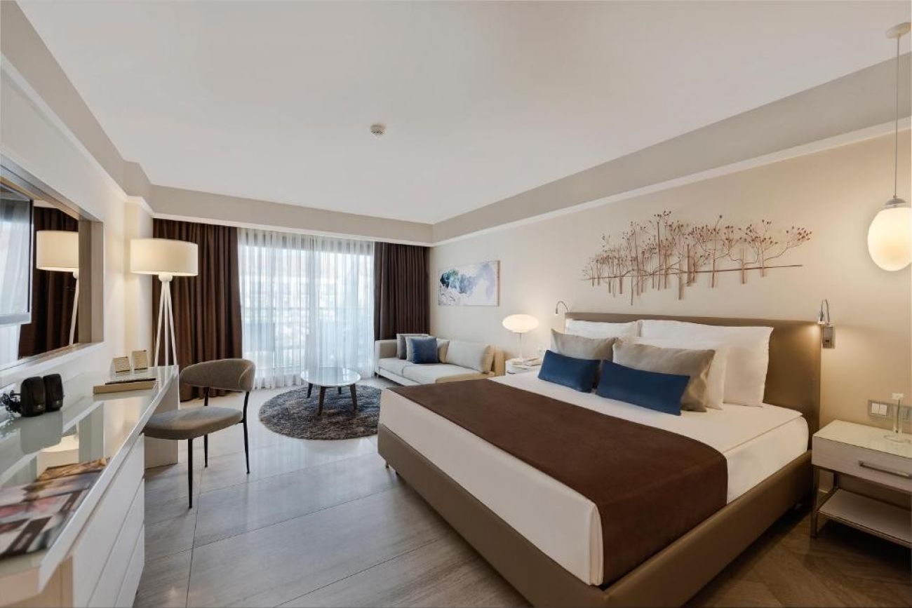 В стаите: Стаята разполага с душ или вана, сешоар, тоалетни принадлежности, халати и чехли, климатик, Wi-Fi (безплатно), чайник, телефон (срещу заплащане), телевизор (безплатно), сейф (безплатно), балкон с мебели, тераса с шезлонги и чадъри, ежедневно почистване на стаята и смяна на кърпите, смяна на спалното бельо 3 пъти седмично, 24-часово обслужване (срещу заплащане), ютия и ютия инж. дъска.