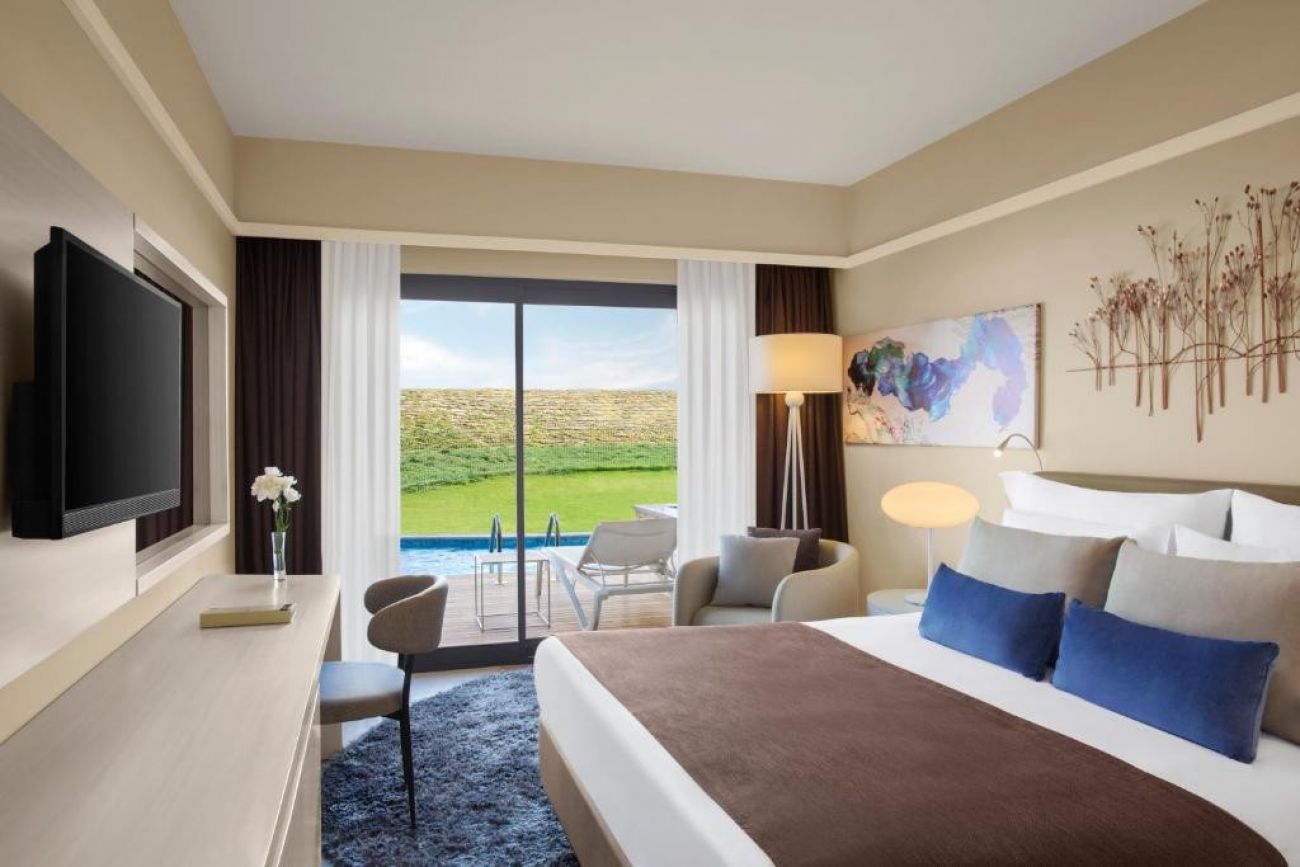 На територията на хотела: Хотелът разполага с два басейна във фамилната част (1080 кв.м и 476 кв.м), басейн с пързалки (110 кв.м), басейн за възрастни (1257 кв.м), вътрешен басейн в смесената зона (80 кв.м) и три водни пързалки. Хотелът разполага с Wi-Fi (срещу заплащане), конферентна зала, пералня (срещу заплащане), лекарски услуги (срещу заплащане), безплатен паркинг, обмяна на валута, магазини (срещу заплащане), основен ресторант "Begonville", Gourmet A la Carte ресторанти "Pearl Fine Dining" (срещу заплащане), "Basilico" (италианска кухня), "Tao" (азиатска кухня), "Amber" (турска кухня), "Sun комплект" (грил, срещу заплащане), сладкарница "Кокуми" (10:00-18:00), барове на плажа Clup House Bar (10:00-23:00), Sunset Bar (10:00-18:00), Lime Pool Bar до басейна в семейната част (10:00-18:00), Yasmine Bar до басейна в зоната за възрастни (10:00-23:00), бар в хотела фоайе Lobby Lounge Bar (24 часа), диско бар (23:00–02:00, срещу заплащане след 00:00) и A la Carte Lounge Bar (17:00–00:00).