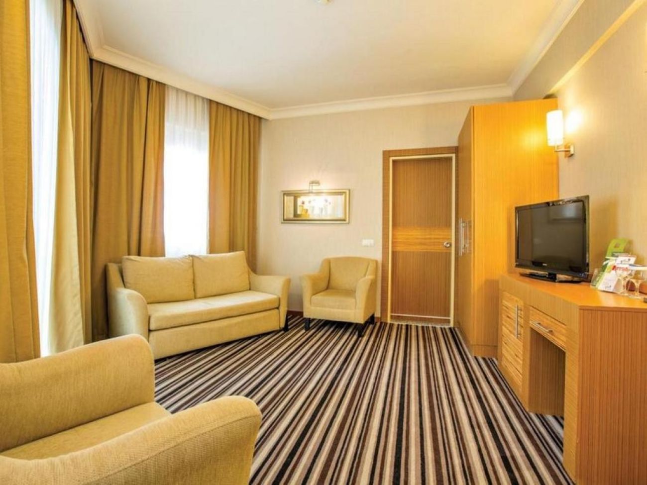 - Стандартна стая (35 кв.м) - разполагат с 1 двойно или 2 единични легла + диван. Максимално настаняване 2 възрастни с 2 деца или 3 възрастни.