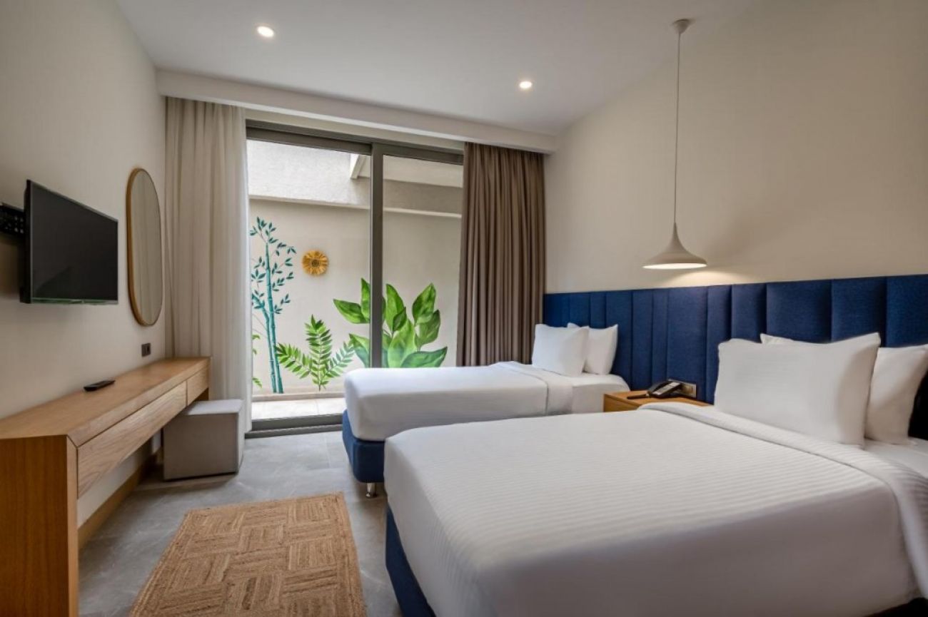 Хотелът се състои от общо 202 стаи, разположени в няколко корпуса. Хотелът разполага със следните видове модерно и комфортно обзаведени стаи: Standard Room Land View (25 m²), Superior Room Sea View (26-30 m²), Serenity Terrace Room (26-30 m²), Family Room Non View Eco (52 m²), Family Room Land View / Sea View (65 m²), Grand Deluxe Room (65 m²), Family Suite (65 m²), Royal Suite (105 m²),