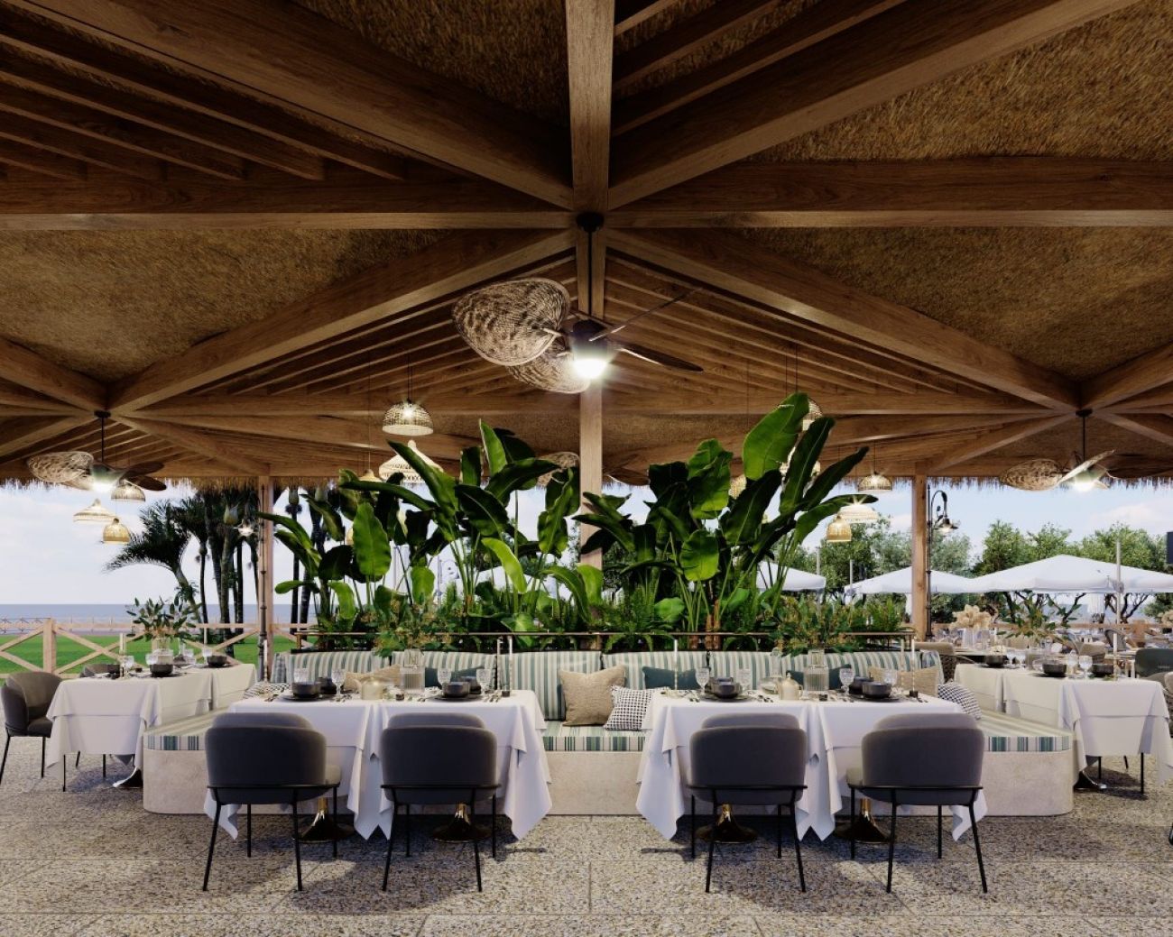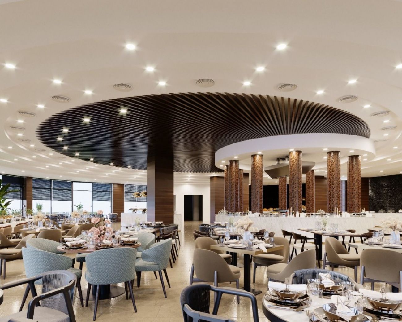 Oсновен ресторант, 2 а-ла-карт ресторантa: рибен и италиански (с предварителна резервация, едно безплатно посещение при мин. 5 нощувки), снек бар, 3 бара, сладкарница, открит басейн, закрит отопляем басейн (в зависимост от сезонните условия), водни пързалки, СПА център, фитнес, конферентна зала, магазини, паркинг.