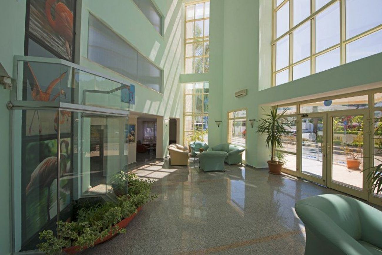 Градски хотел, разположен на първа линия на брега на морето, малка територия. Добро съотношение на цена качество.