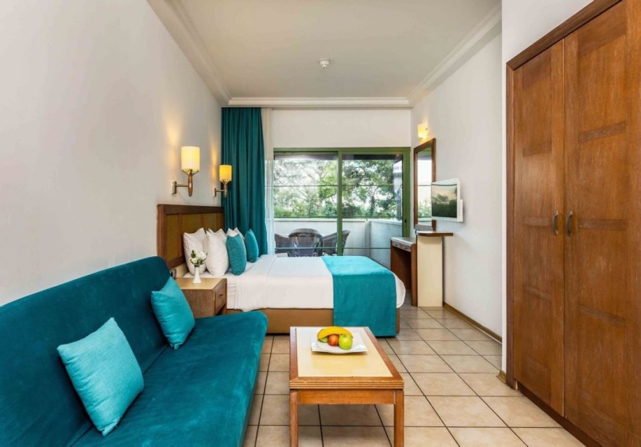 Bungalow-One Bedroom - 26-30 m², Този тип стаи с една спалня са разположени в градината. Всяка стая разполага с едно двойно или две единични легла. В повечето от този тип стаи има разтегателен диван. Всички стаи разполагат с баня с душ, балкон или тераса, а повечето са с изглед към морето. Останалите са с изглед към градината или гората.