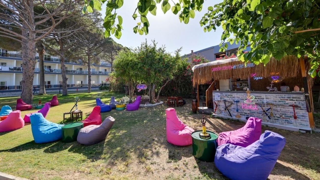 Основен ресторант, 2 снек ресторанта, 3 бара, дискотека, 3 открити басейна, водни пързалки, дискотека, игрална зала, СПА център, паркинг.